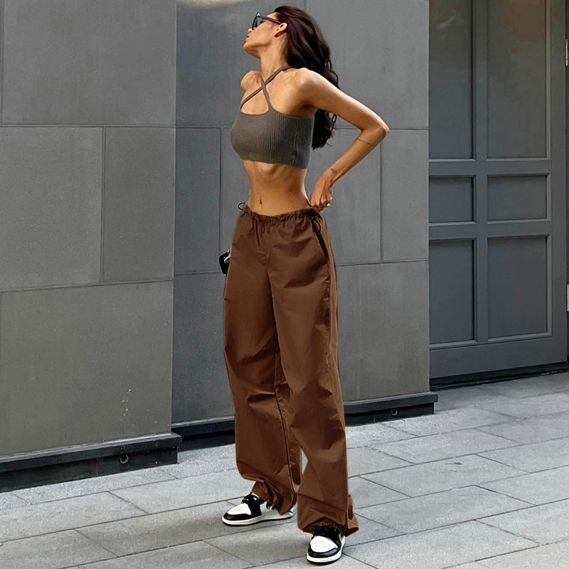 Plataz Rope Girded Casual Workwear Trousers Women Street Fashion Trend Women's Simple Loose Trousers DJPT