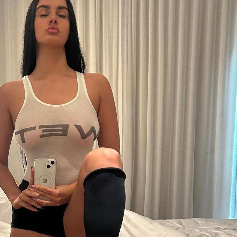 Plataz Street Casual Print Blouse Female 2025 Summer New Hottie Sexy Vest DJPT