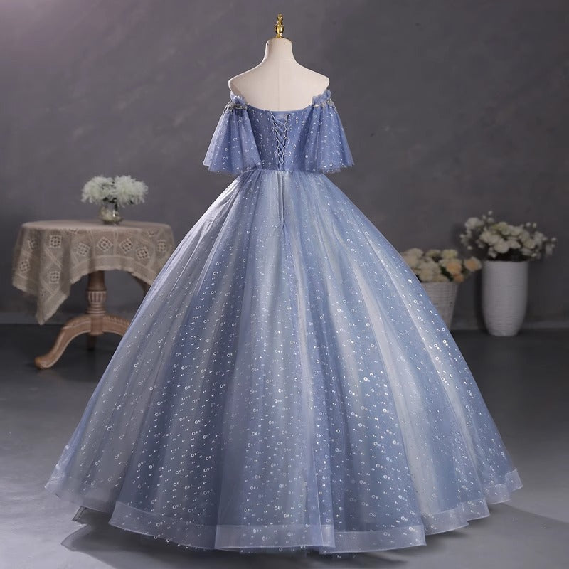 Plataz Gray-Blue Temperament Beautiful Solo Performance Costume Student Vocal Art Canopopy Skirt Annual Meeting Host Evening Dress
