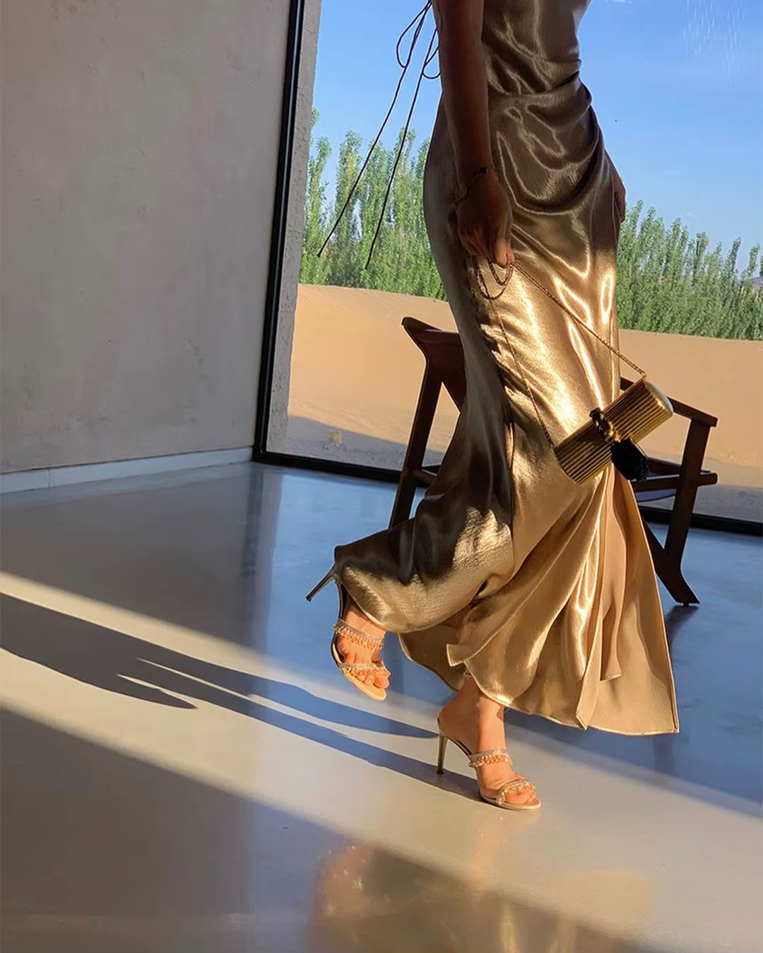 Plataz Mermaid Straps Neckline Champagne Satin Long Prom Dress Evening Dress Formal Dress SD2175 HZ0628