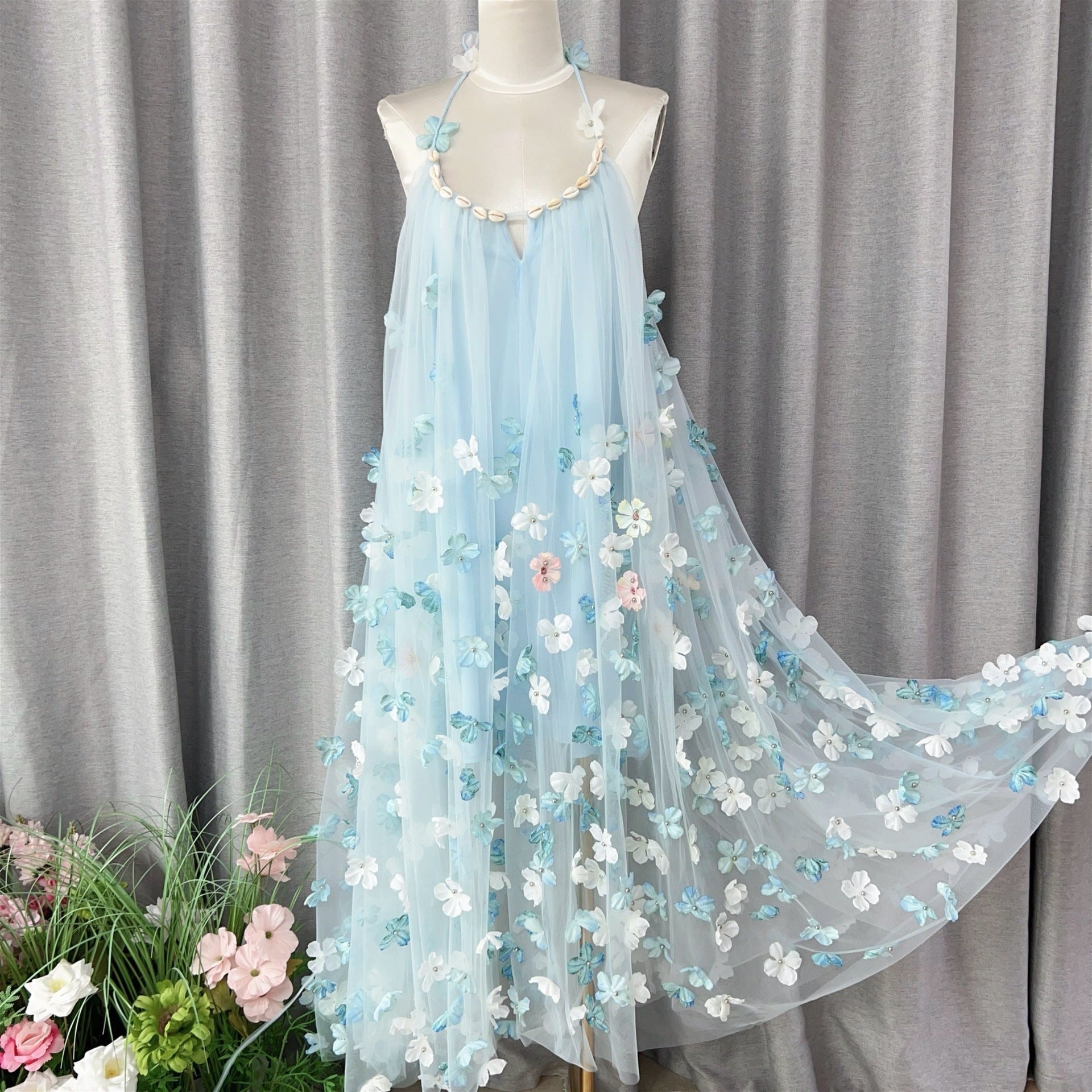 Plataz And Summer 2025 New Dream Super Fairy Three-Dimensional Flower Skirt Women Hanging Dress Floral Dress Morning Robe Holiday Dress