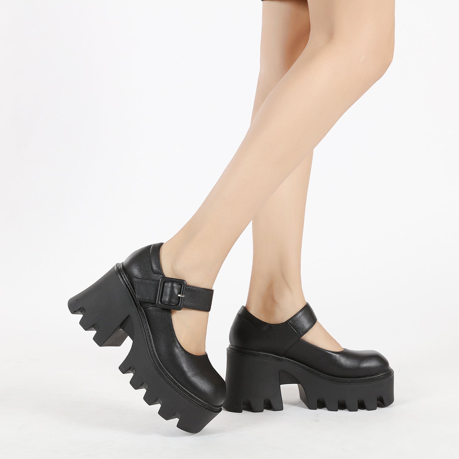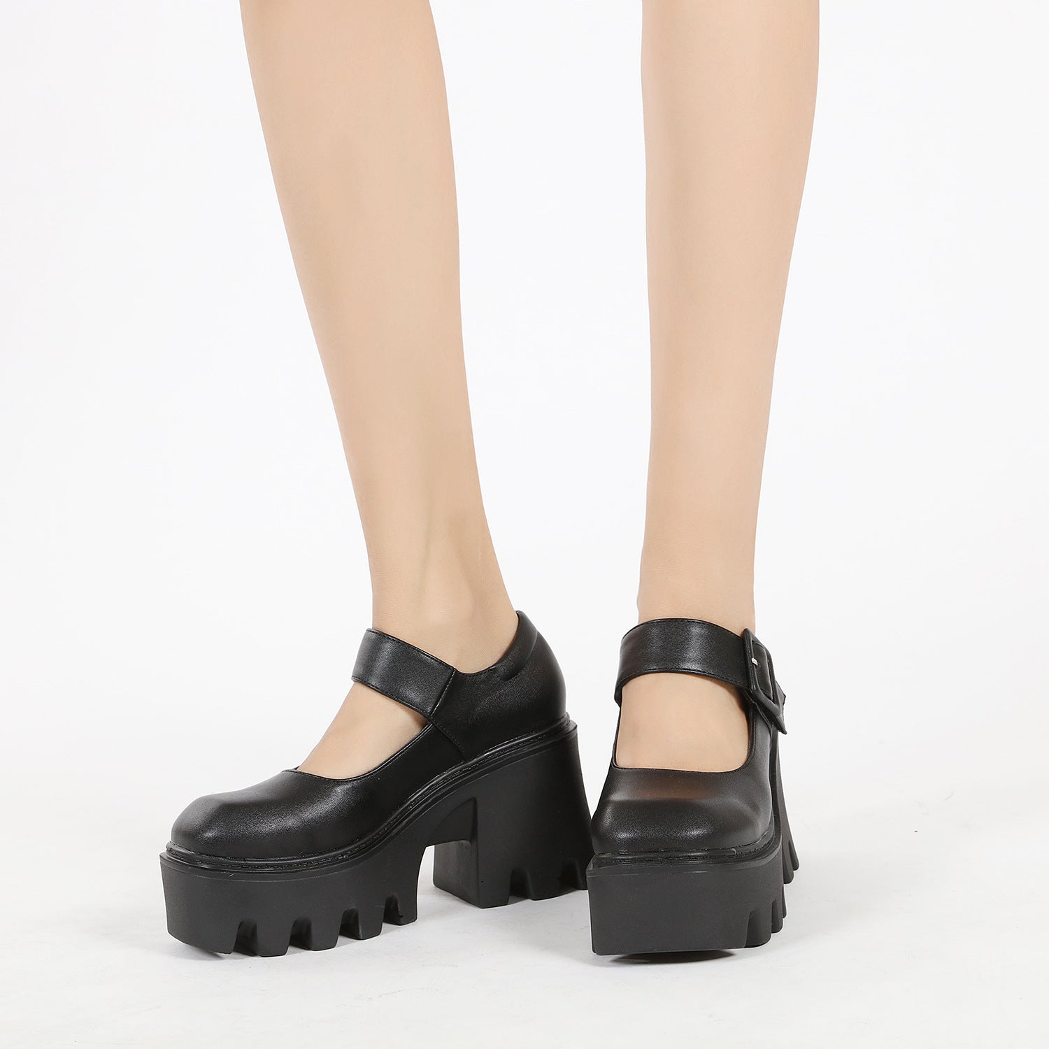 Plataz Mary Jane Women's Shoes 2024 New Square Head Small Tall Shoes Pine Cream Sole Coarse Single Shoes Women High Quality Shoes