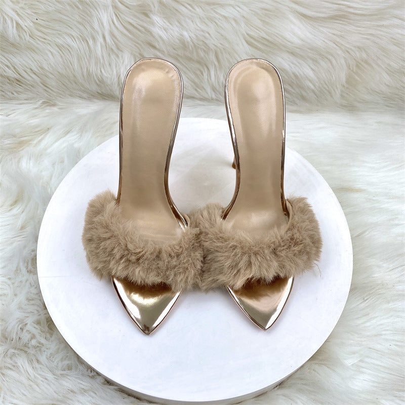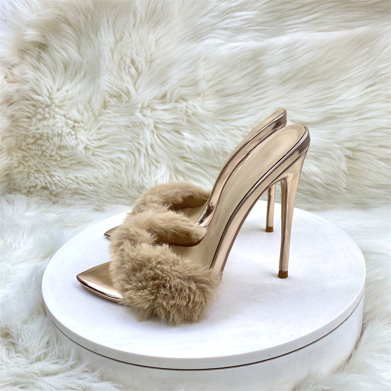 Plataz Sandals Tips Champagne Hairshoes Women's High Heels 12Cm High Quality Shoes
