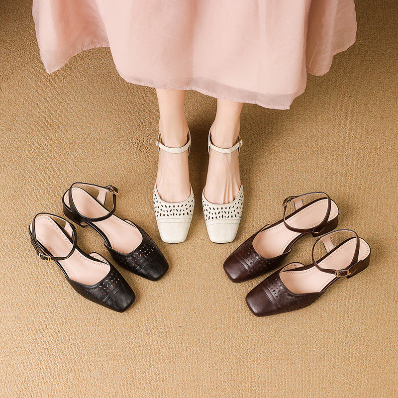 Plataz Size Women's Shoes Wrapped Head Thick Heel One-Word Sandals Women 2025 Summer New Low Heel Women's Shoes High Quality Shoes