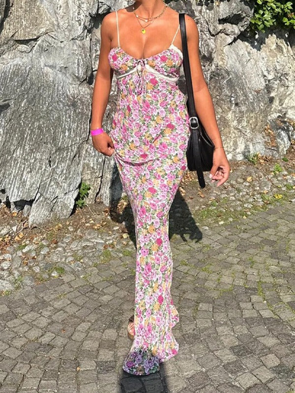 Plataz Broken Flower Holiday Sling Skirt Sexy Hottie Show Back Dress V Collar Body Hip Dress Summer HZ0628