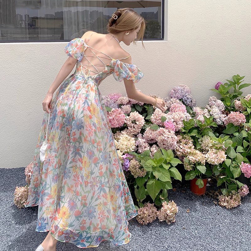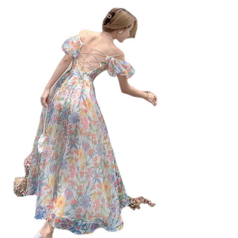 Plataz Lusty French Sexy Back One-Word Shoulder Bubble Sleeves Sleeves Hanging Dress Women's Summer Seaside Holiday Dress