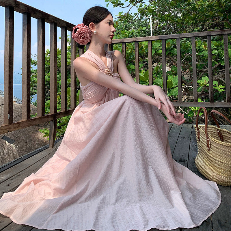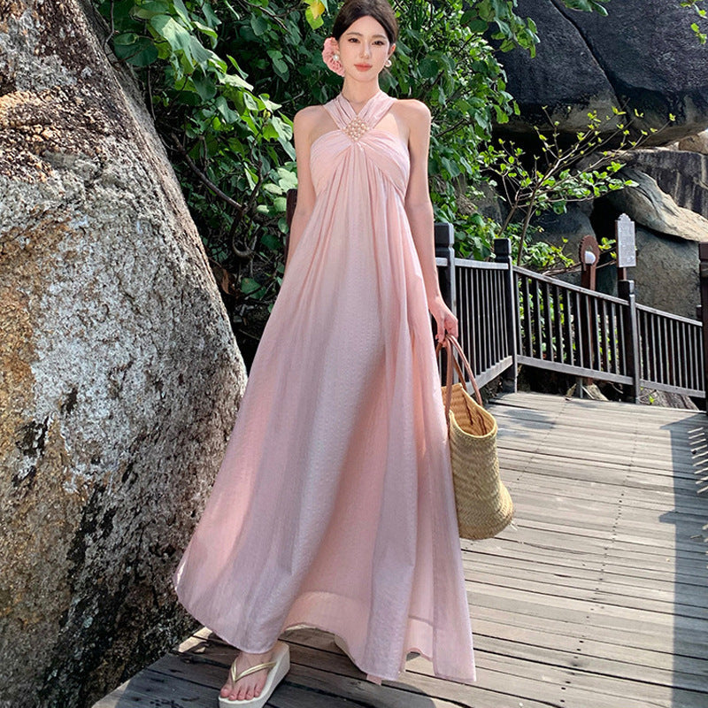 Plataz New Summer Photo Wearing Hanging Neck Beach Dress Sanya Seaside Holiday Dress Woman