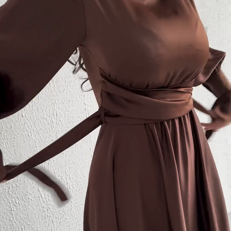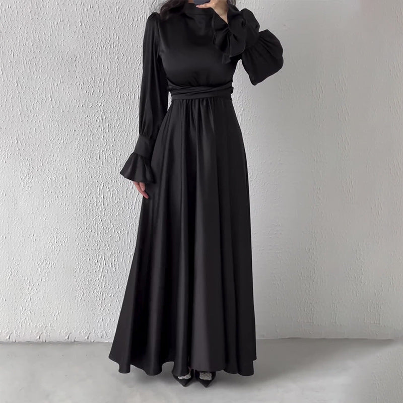 Plataz Long-Sleeved Lotus Leaf Cuffed Belt Waist-Repaired Penetted Joint Dress