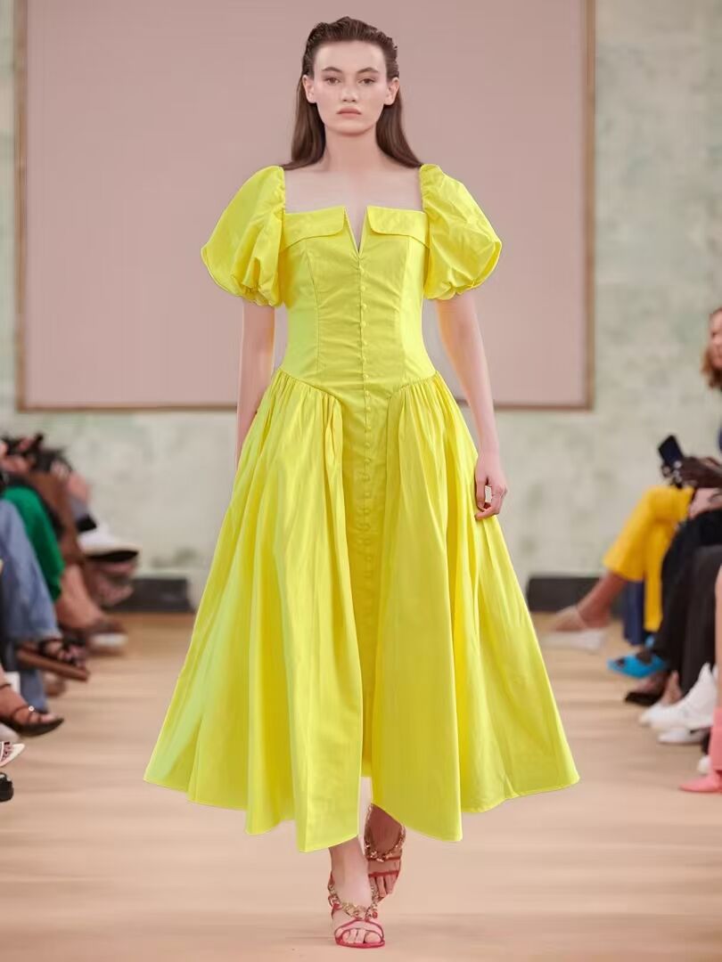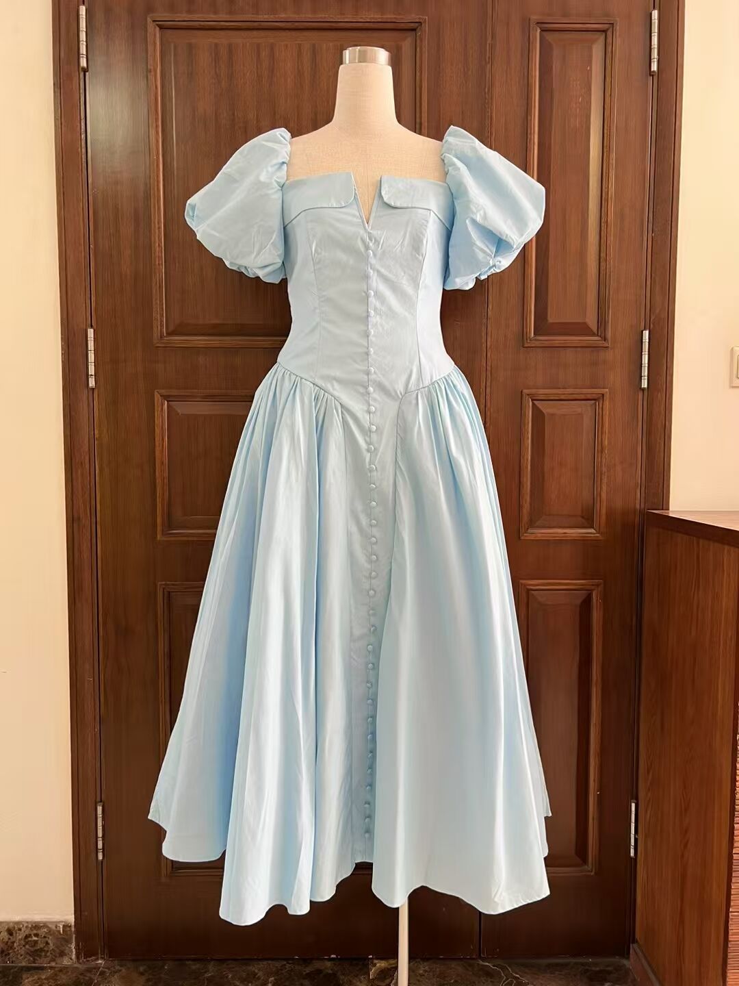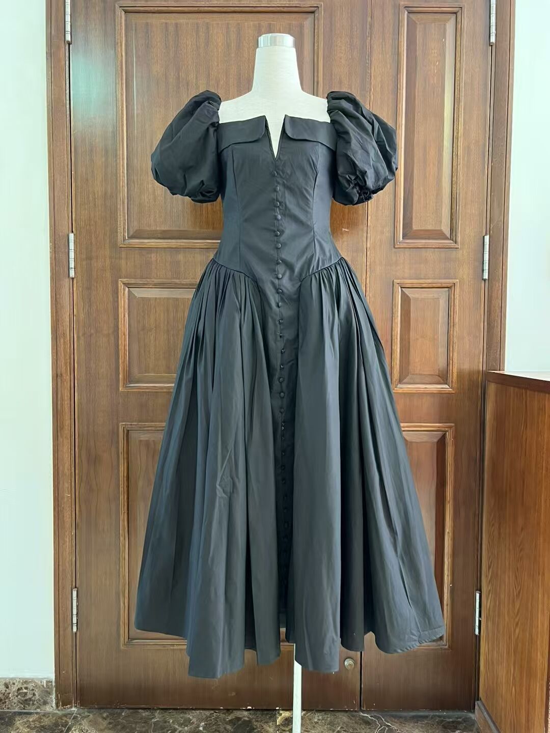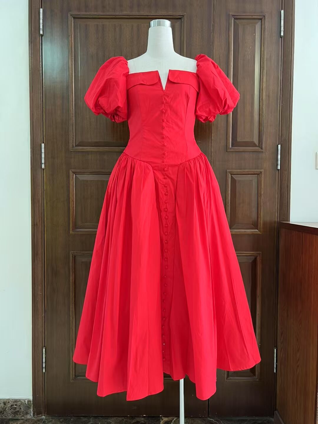 Plataz Red Dress 2025 Summer Banquet Sexy Out-Shoulder Bubble Sleeve Short-Sleeved Waist Dress Dress