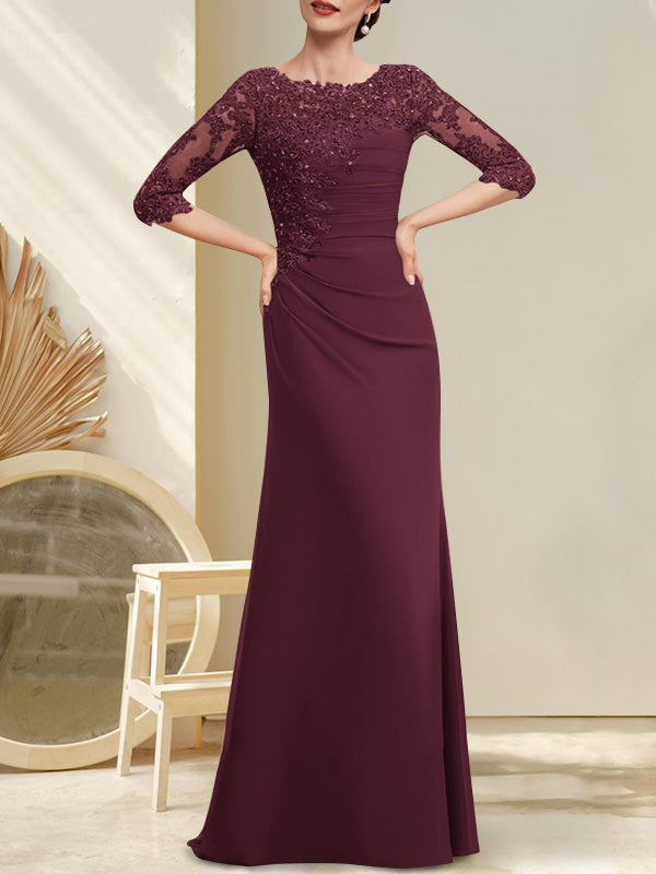 Plataz Scoop Floor-Length Chiffon Lace Mother of the Bride Dress With Beading Pleated HZ1007