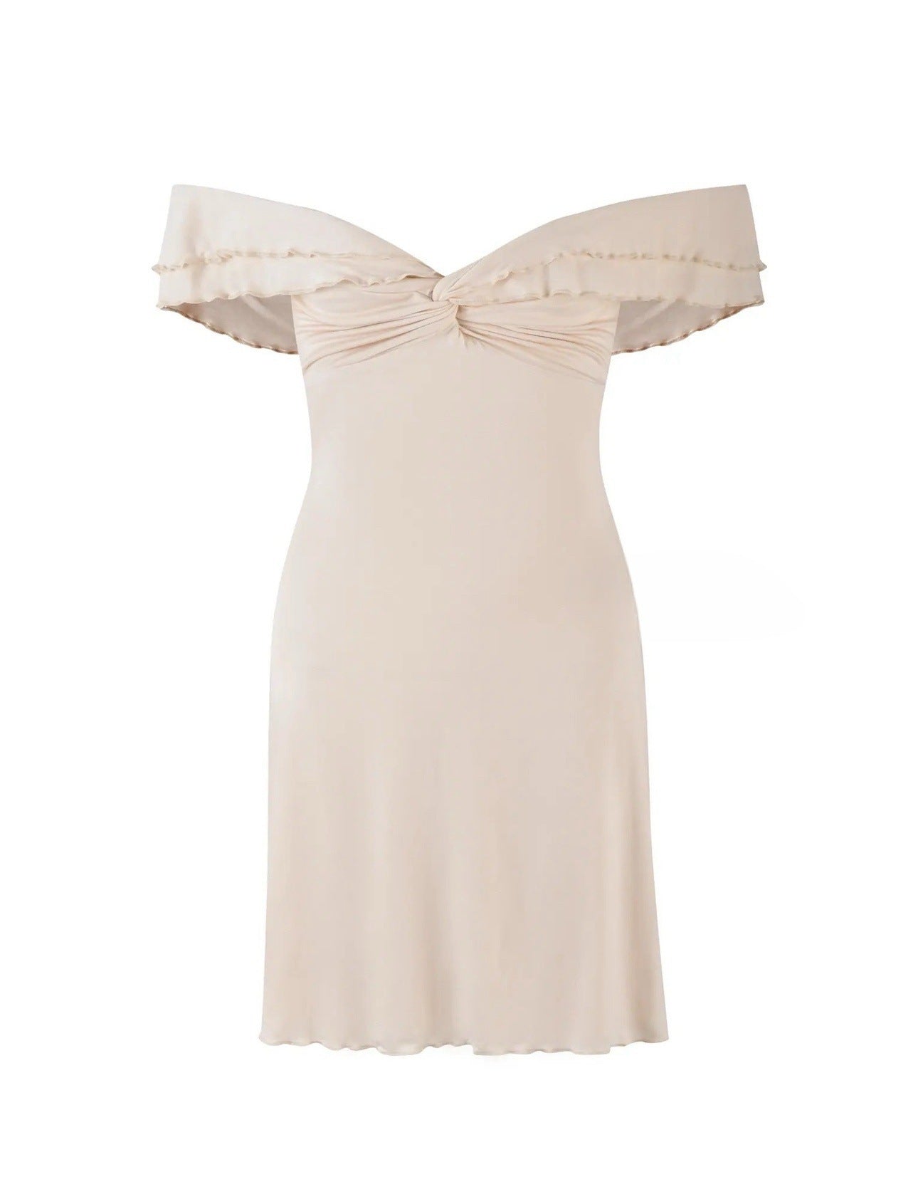 Plataz Sexy One-Word Hanging Shoulder-Wielt Tective Dress Spring And Summer Twinning Lotus Side Sleeves And Hips Mini Short Skirt