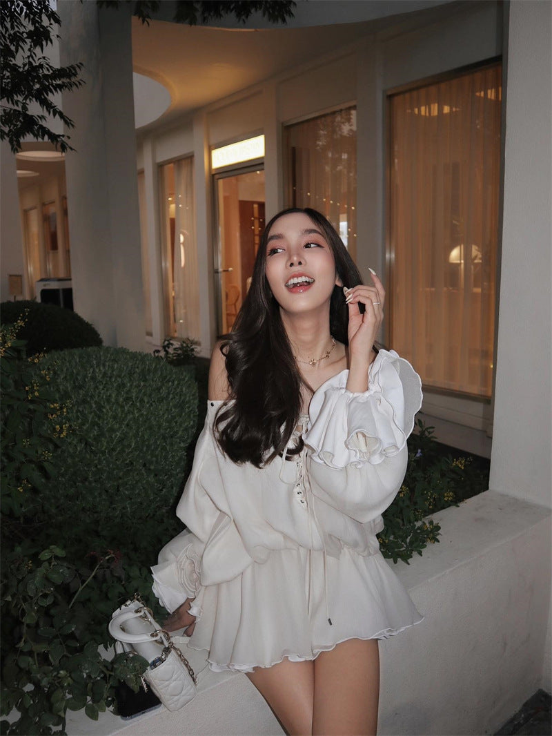 Plataz Shoulder Strapped With Long-Sleeved Dress Women's Early Autumn French White Short Dress Design Feel Waist Temperament A-Character Skirt