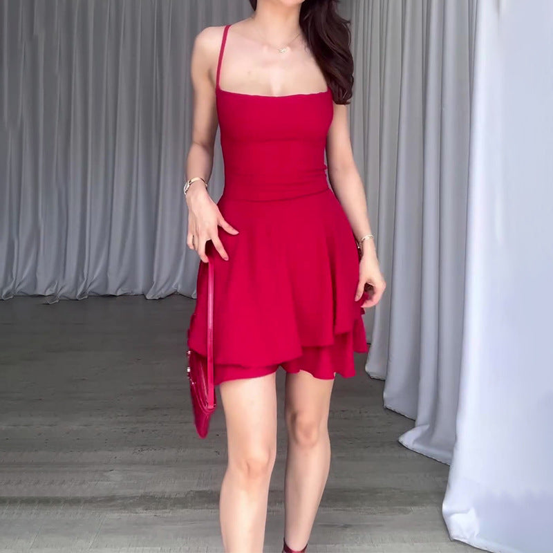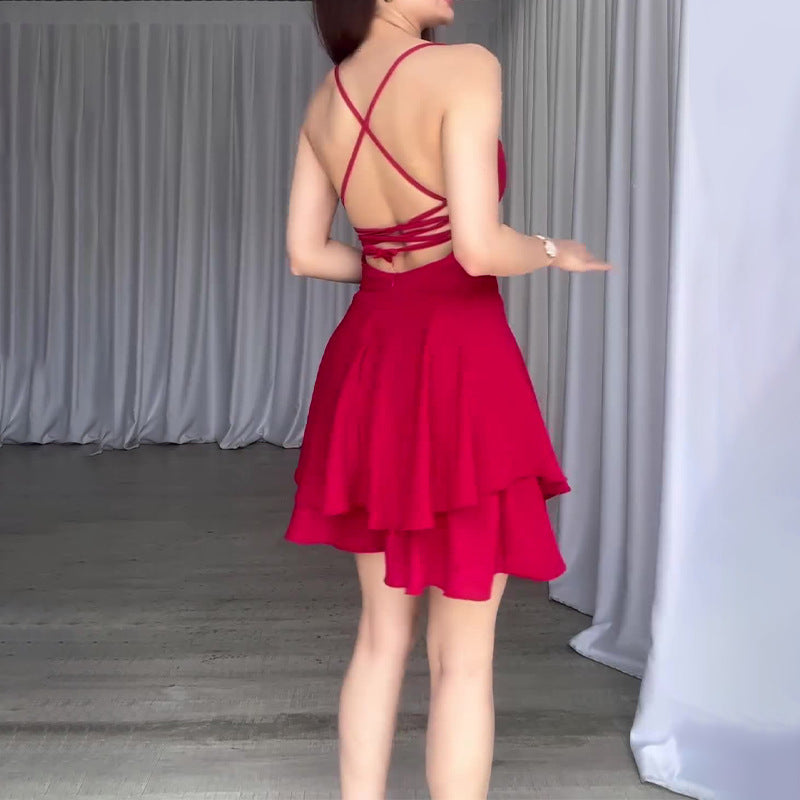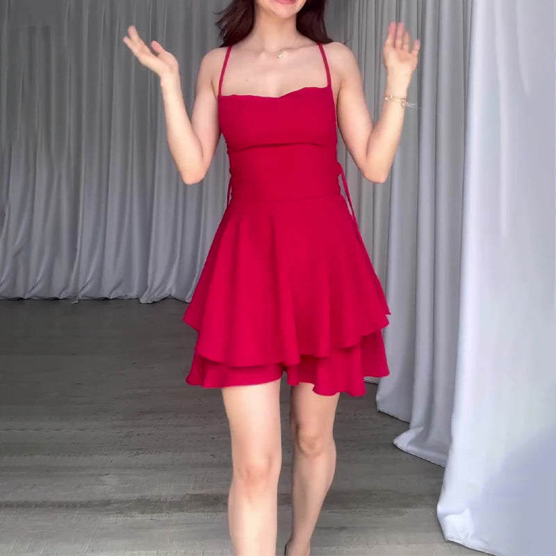 Plataz Women's Summer Sling Hanging Neck Collar Strap Sexy High-Rise Repair Cake Skirt