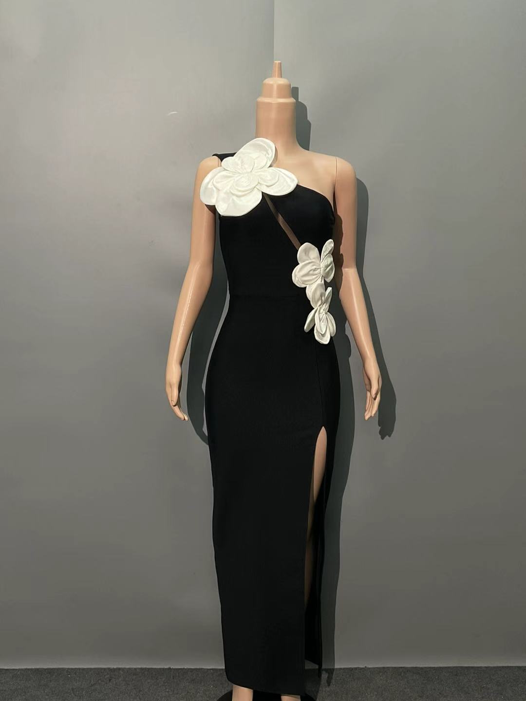 Plataz New Slant Shoulder Three-Dimensional Flower Evening Dress Sexy Elegant Party Party Tender Women's Dress