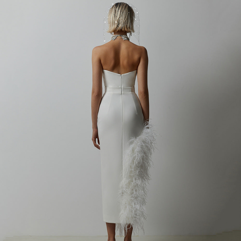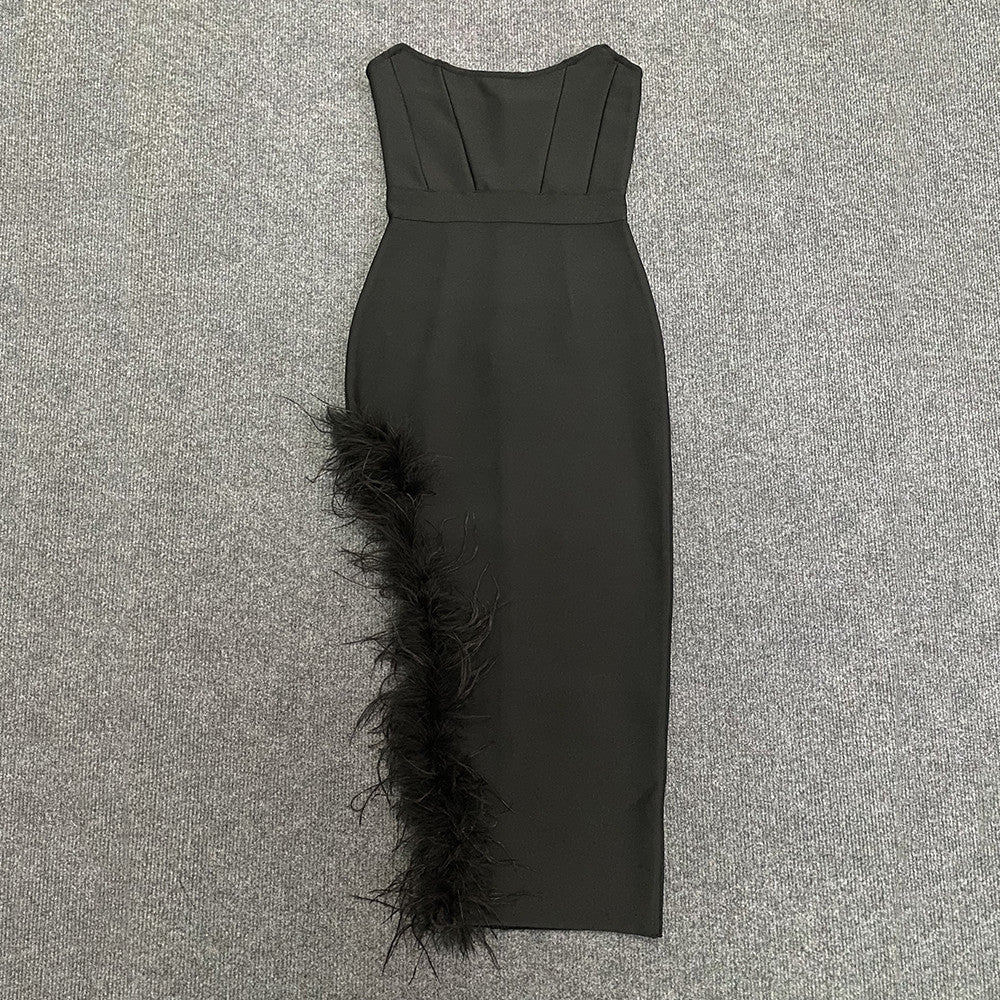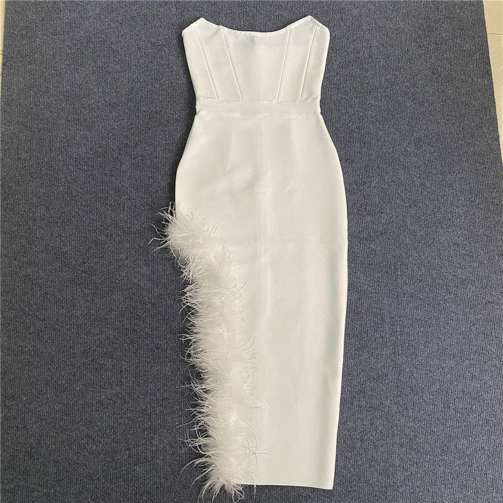 Plataz Open Fork Bra Feather Bandage Repair Body Elastic Party Mid-Long Dress Dress Dress