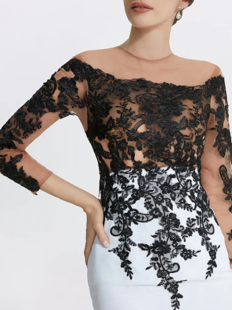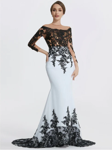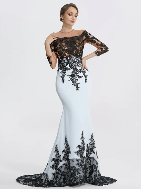 Elegant Applique Mermaid Mother of Bride Dress Jewel Neck Evening Gown Long Formal Dress HZ1024