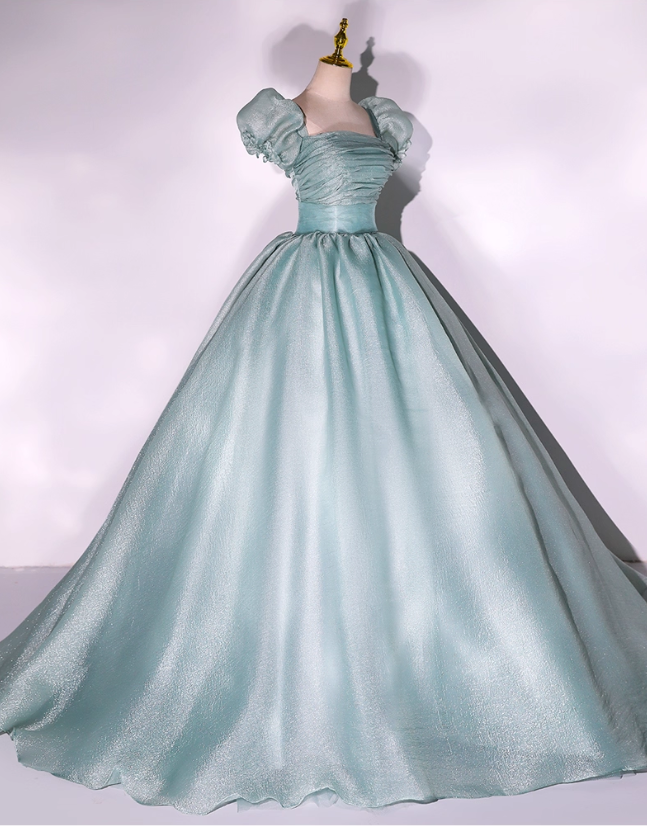 Elegant Glittering Satin Sweet 16 Quinceanera A-Line Puffy Sleeve Evening Dress Long Ball Gown HZ1024