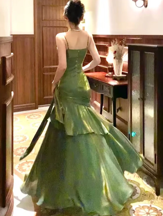 Elegant Satin Sweetheart Prom Dress Mermaid Spaghetti Strap Evening Gown Party Dress Long Formal Dress HZ1024