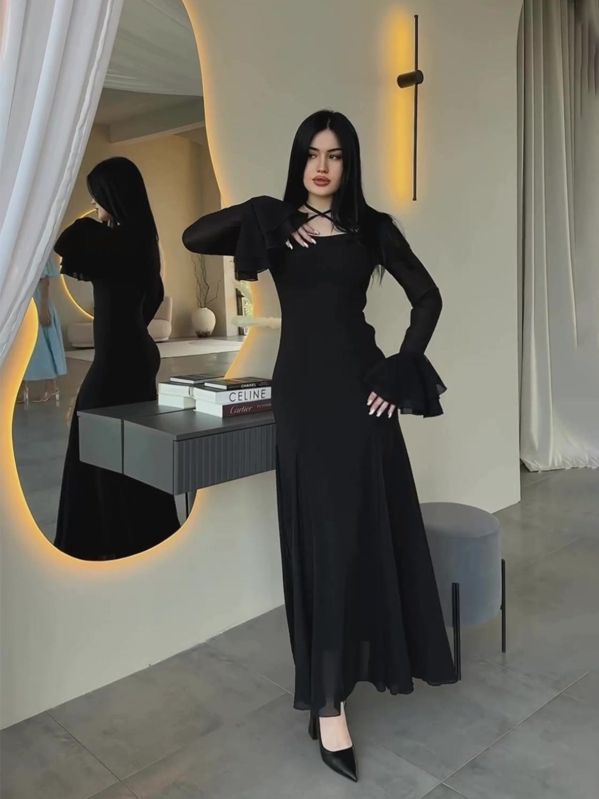 Plataz 2024 Gentle Wind And Chiffon Gentle Lotus Leaves Side Ribbon Repair Dress