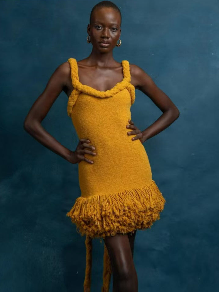 Plataz 2024 Hand-Woven Mahjong Rope Shoulder Strap Tuxedo Skirt Skirt LX0092