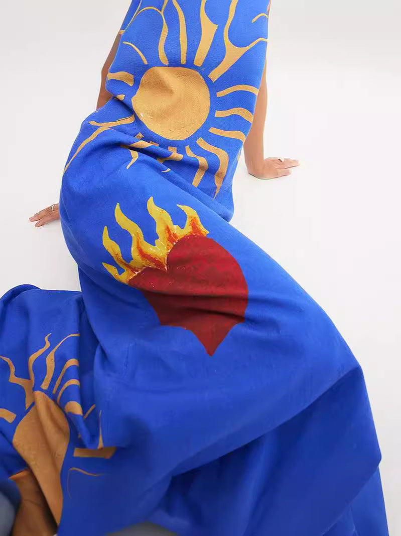 Plataz 2024 New Beach Leisure Wind Depth V Sling Dress
