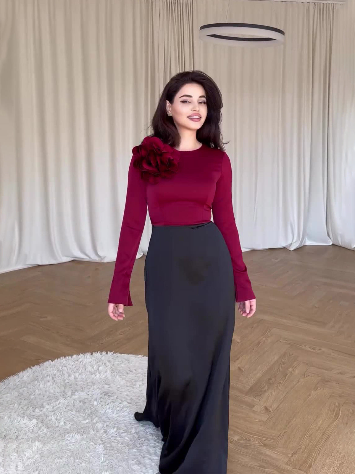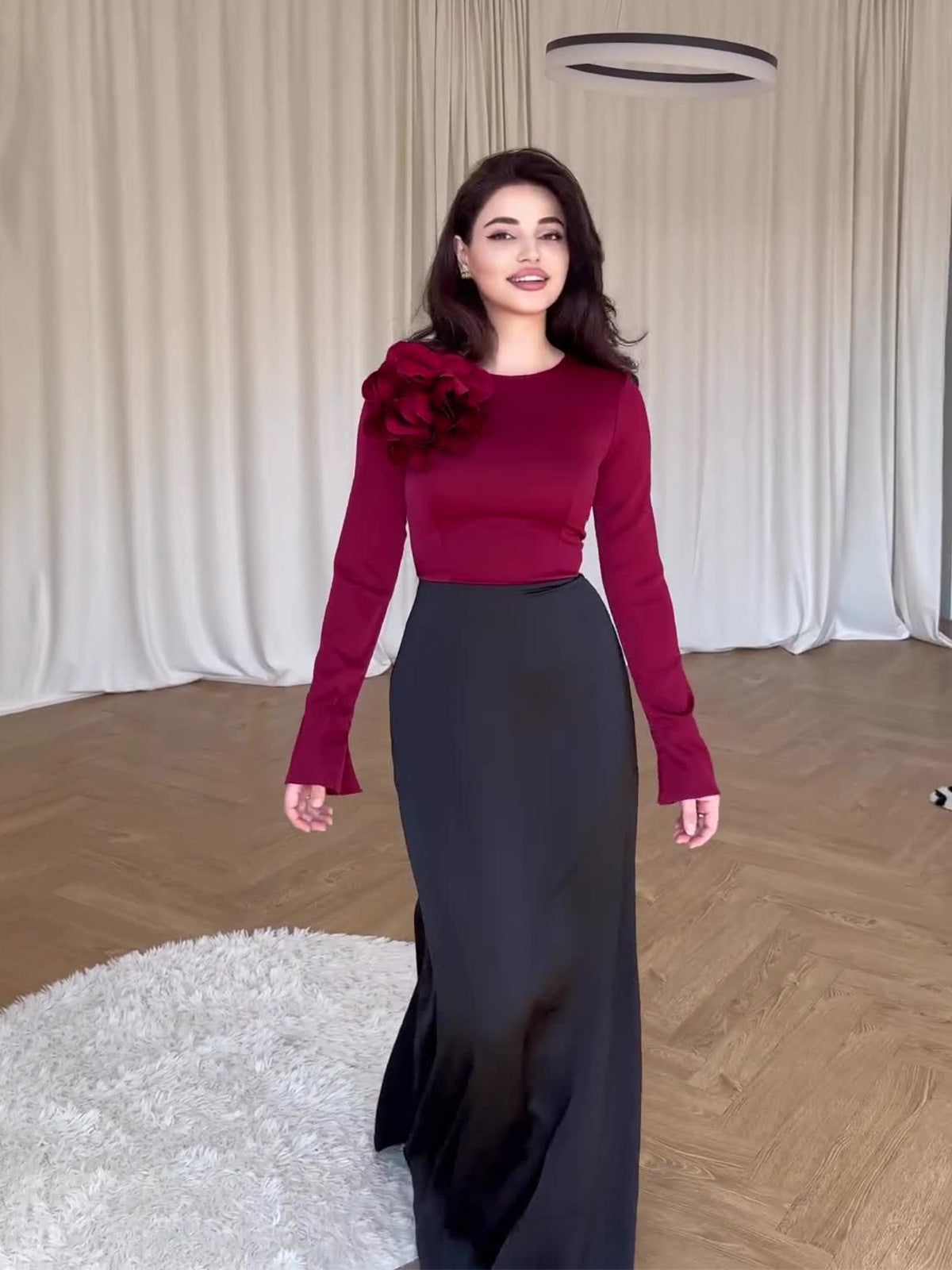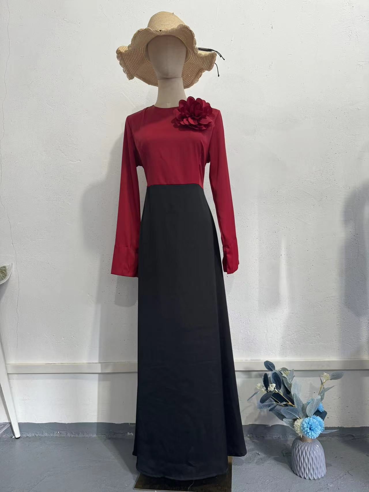 Plataz 2024 New Sting Repair Body Splicing Colliding Color Flowers Accessories Long Dress