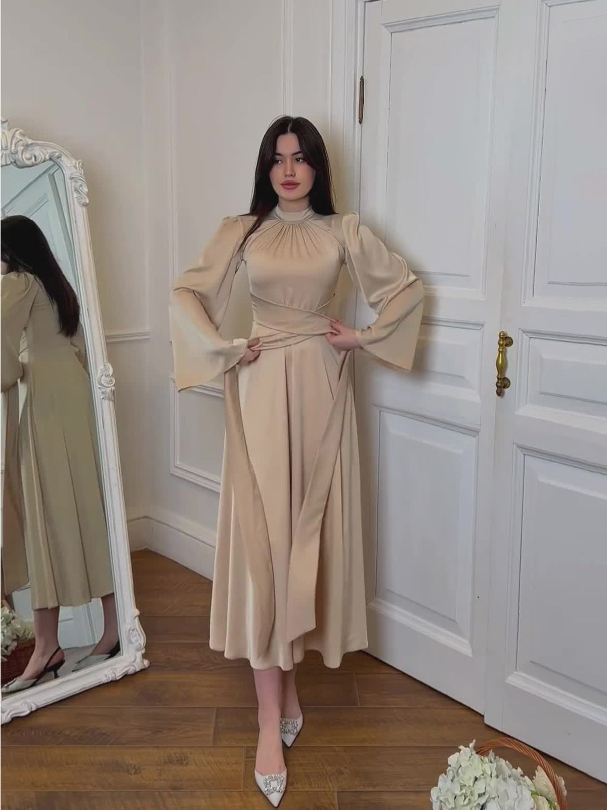 Plataz 2024 New Strapped Solid-Colored Ribbon Princess Wind To Show Thin Dress