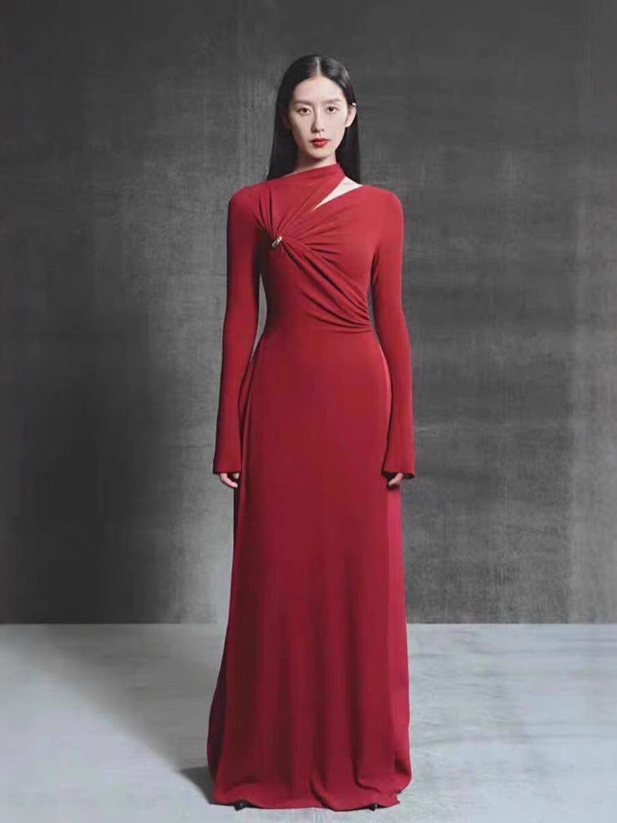 Plataz 2025 High-Senior Elegance Aneled Collared Metallic Trim Folded Dress Dress Dress Dress