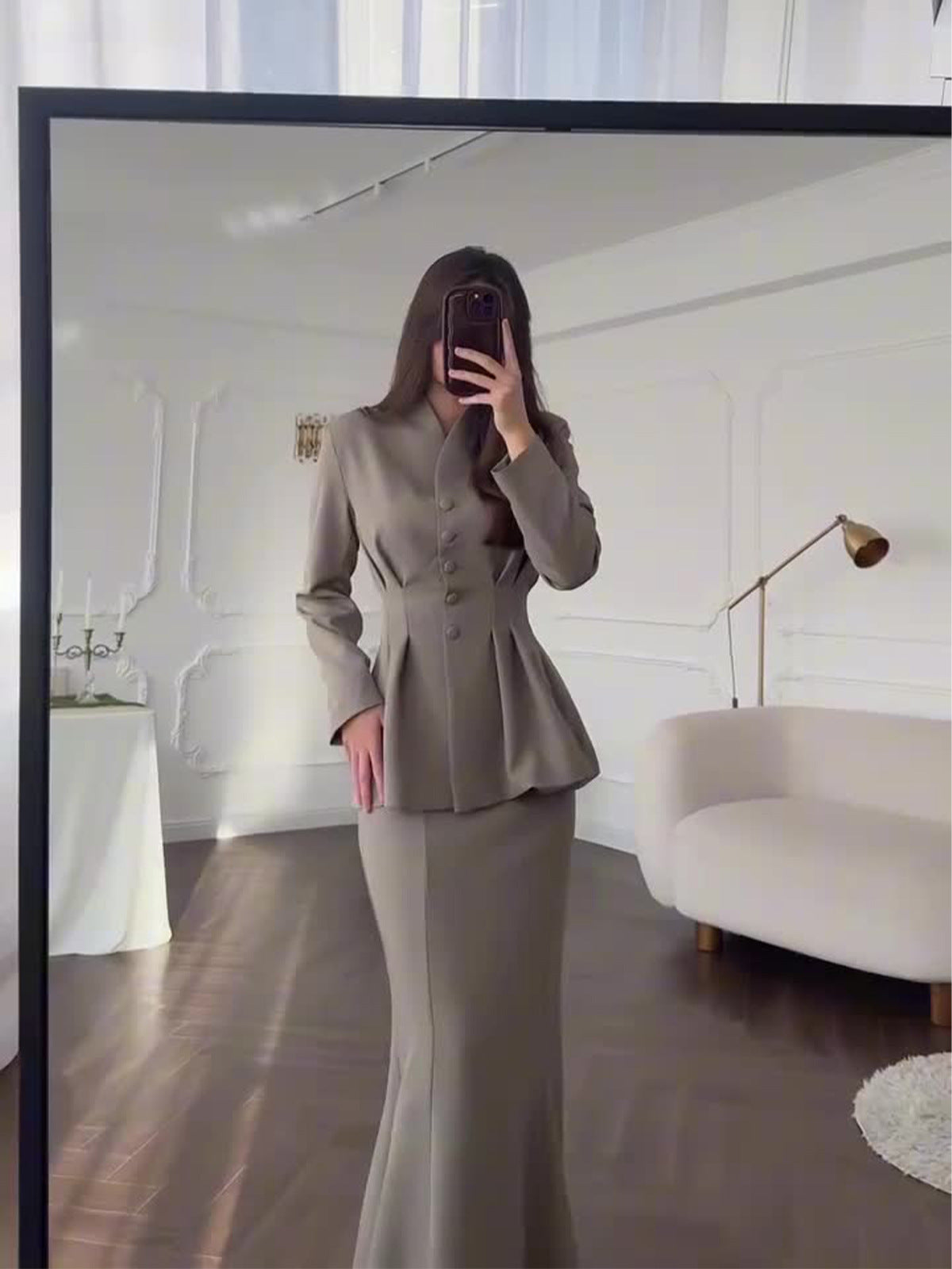 Plataz 2025 New Retro Soft And Pure Color Long Sleeve Blouse Long-Sleeved Dress Elegant And Comfortable Suit Woman