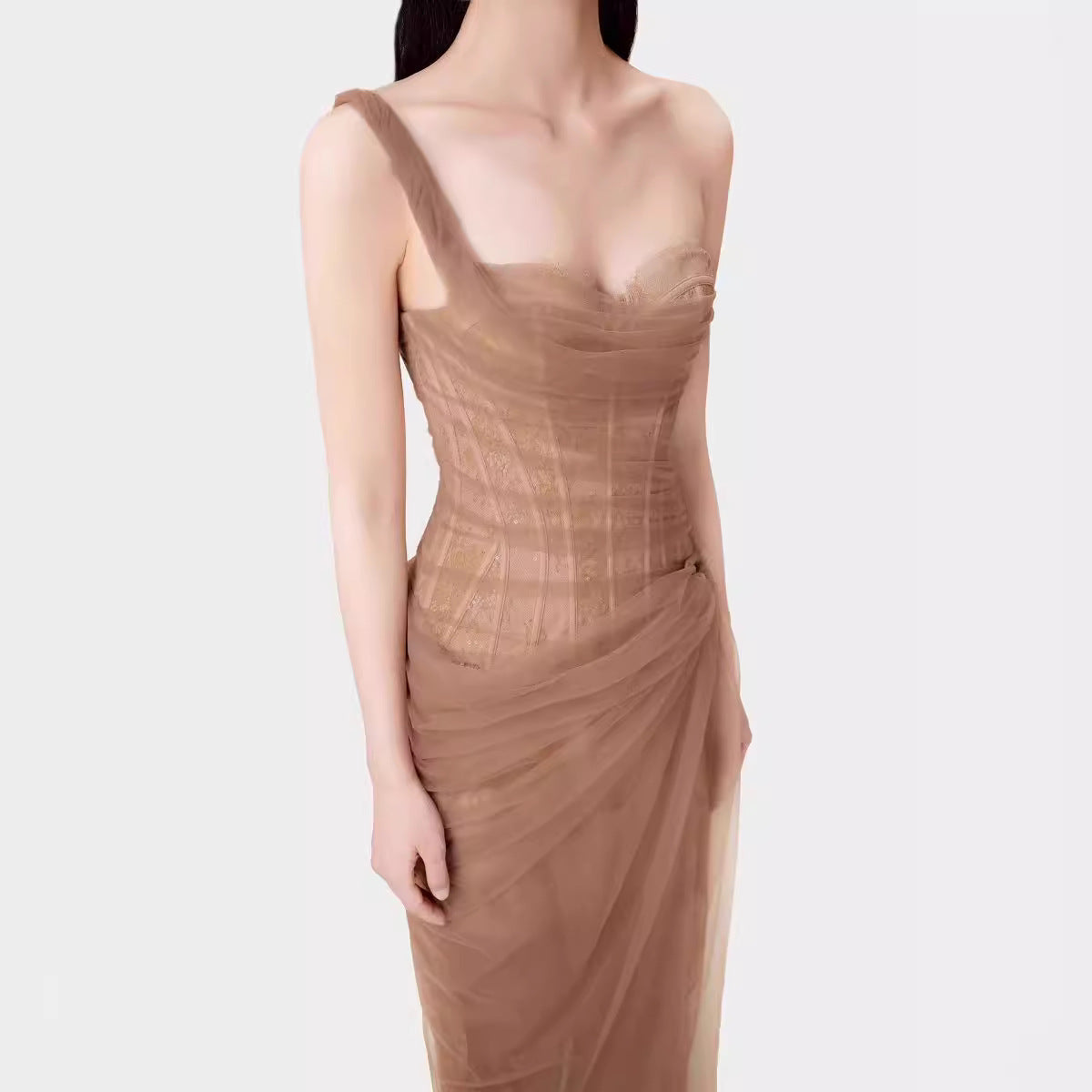 Plataz 2025 Summer Light Yarn Slinged Dress Dress Dress Salt Mesh Dress Seaside