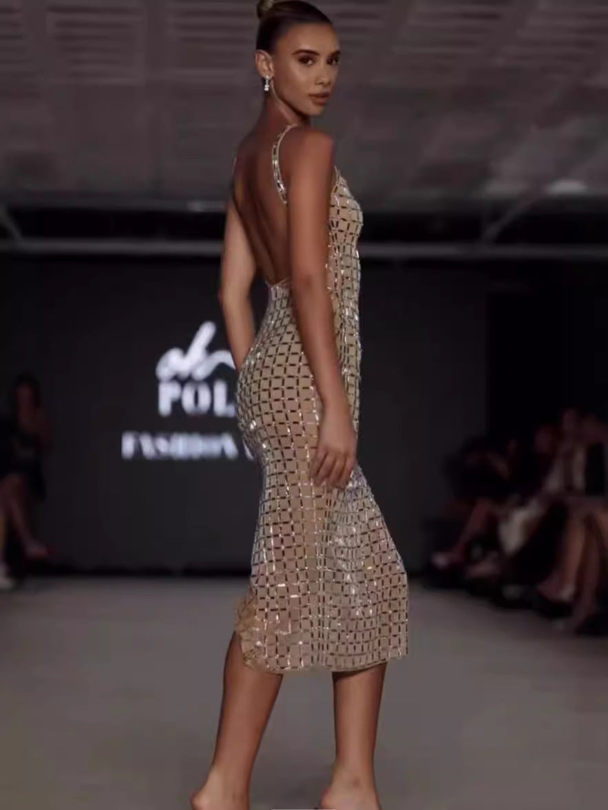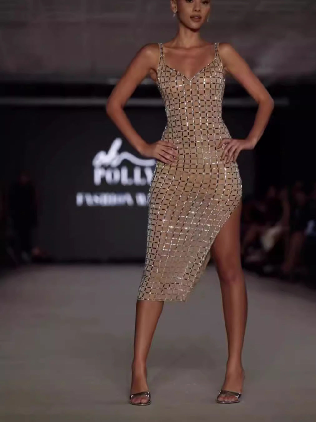 Plataz 24 Years Autumn And Winter Sexy Geic V-Neck Irregularly De-Positioning Cut Hot Diamond Skirt