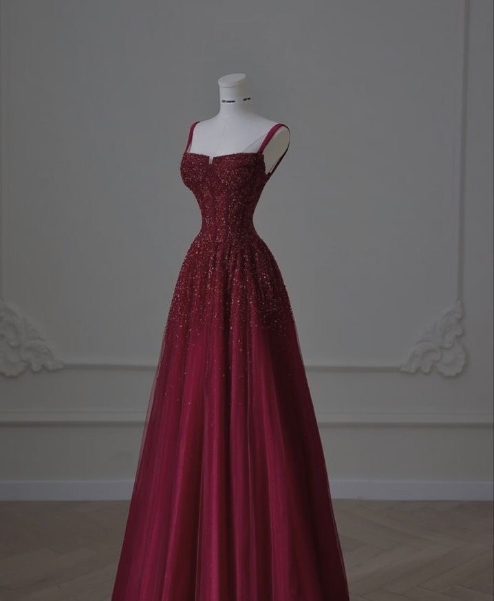 Plataz A line Straps Sequin Burgundy Long Party Dress Prom Dresses SD1503 HZ0628