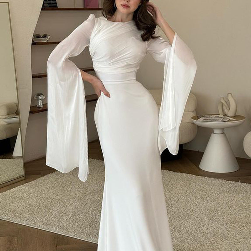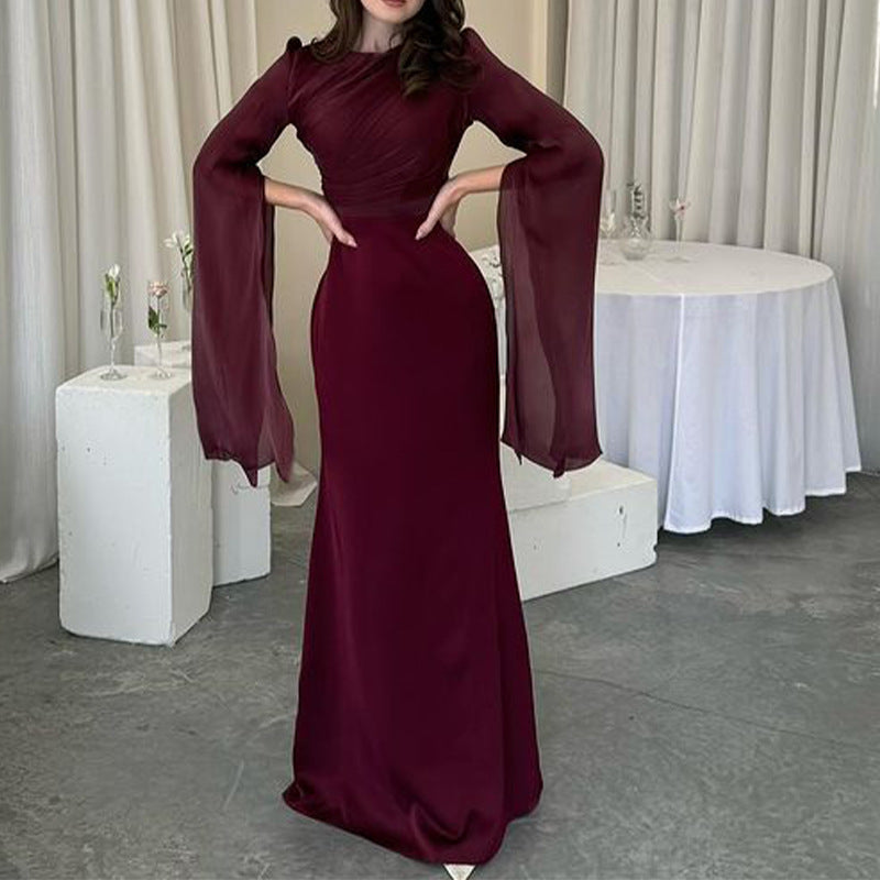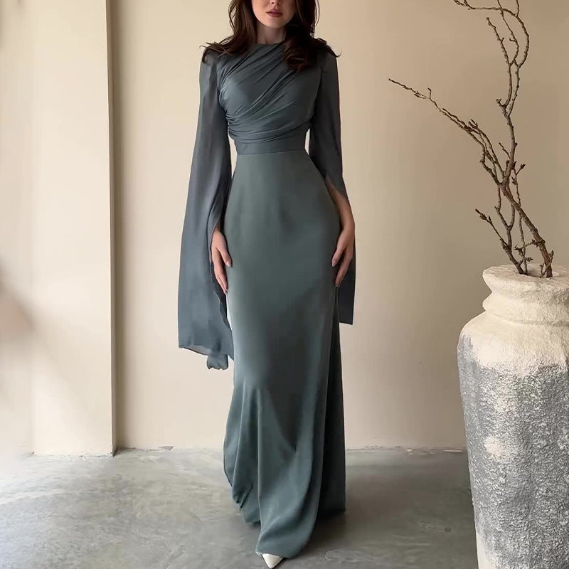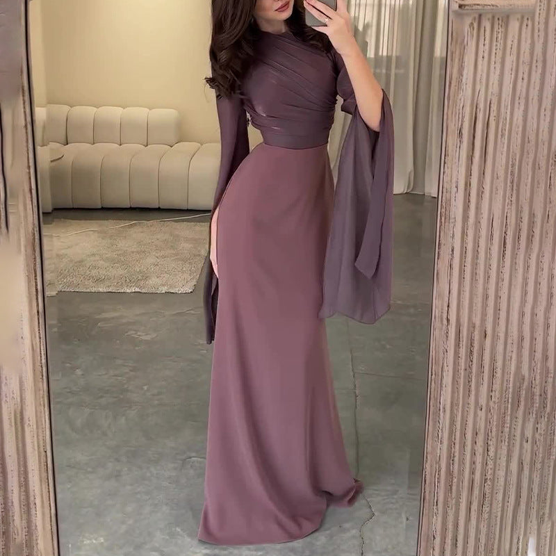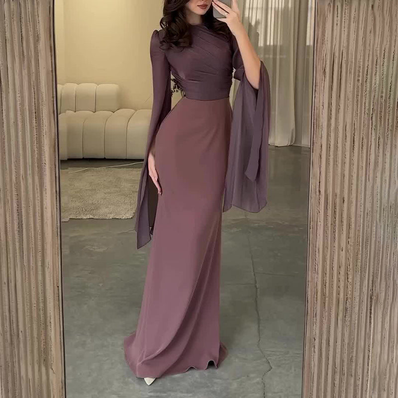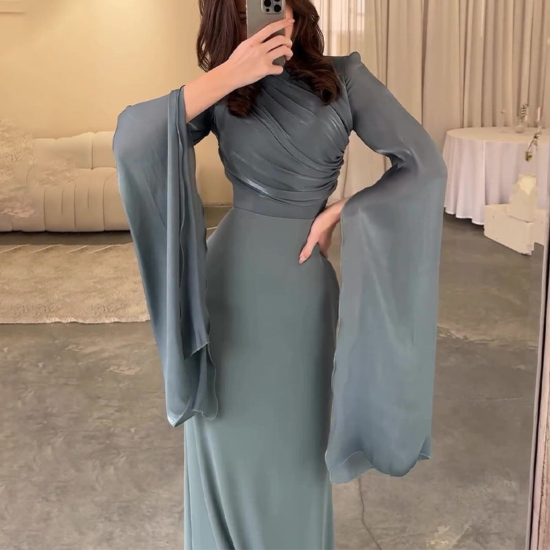 Plataz And Autumn 2024 Solid Color Splicing Big Swing Sleeve Collar Body Repair Dress Dress
