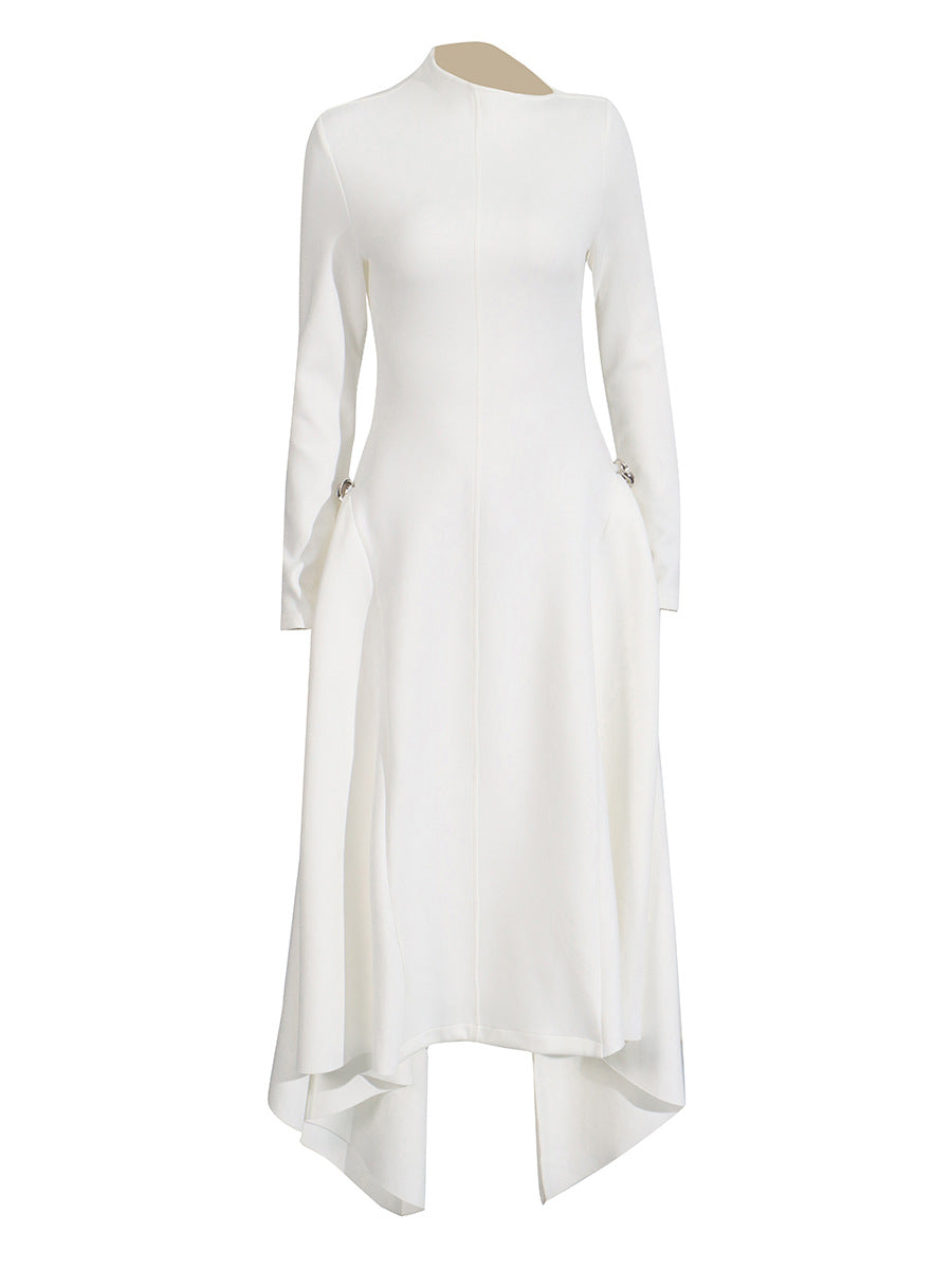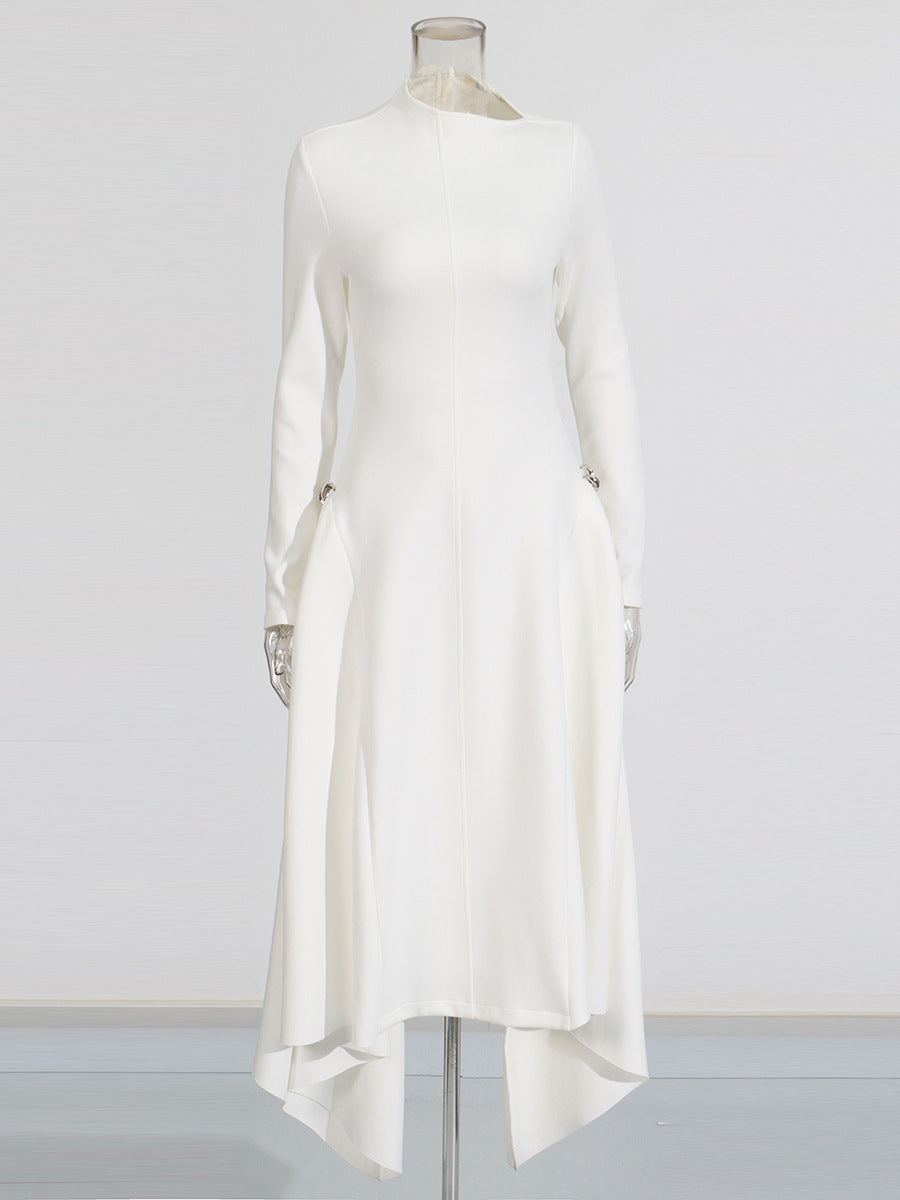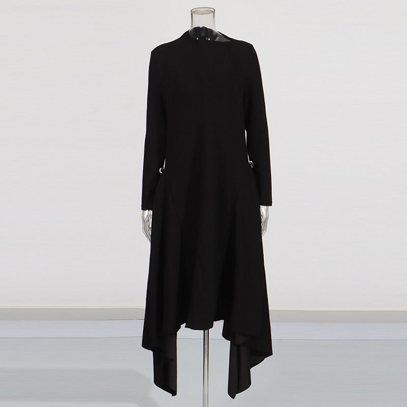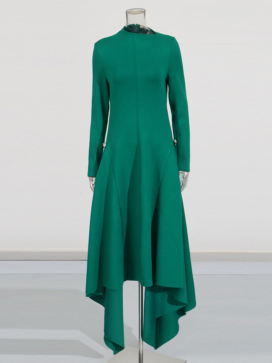 Plataz Asian Temperament Elegant Wind Collar Long Sleeve Irregular Dress 2025 New Solid Broad Ass Dress Women Summer