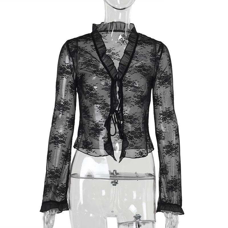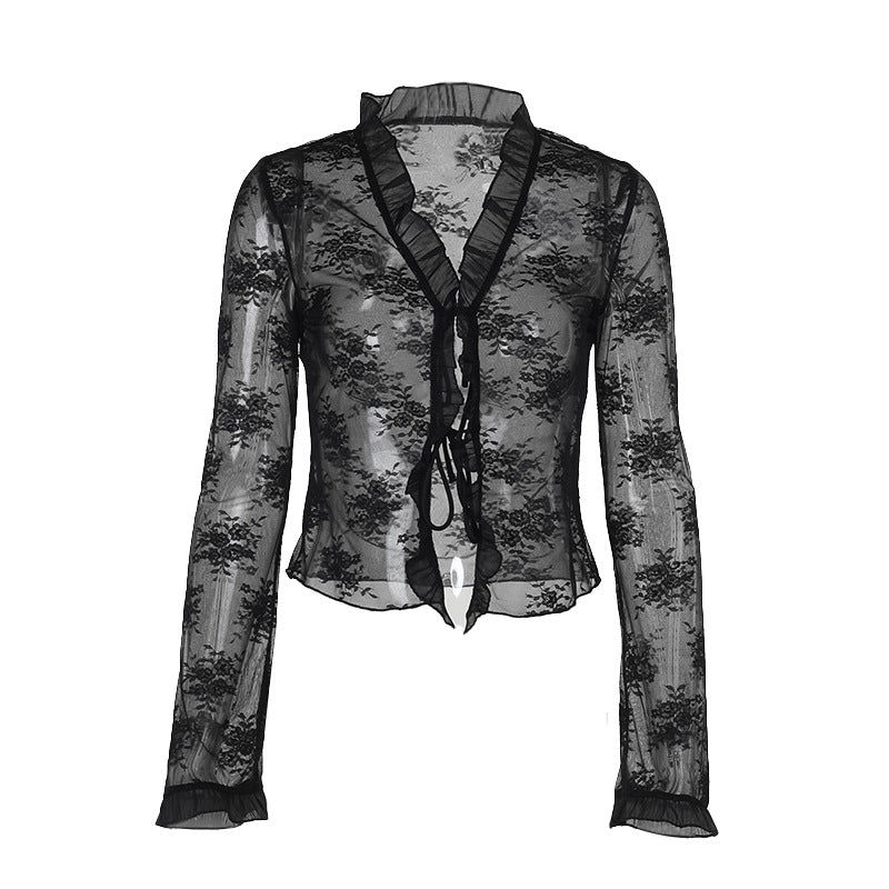 Plataz Autumn 2025 New Fashion Spice Girls Sexy Lace Tie Tie Shirt Girl DJPT