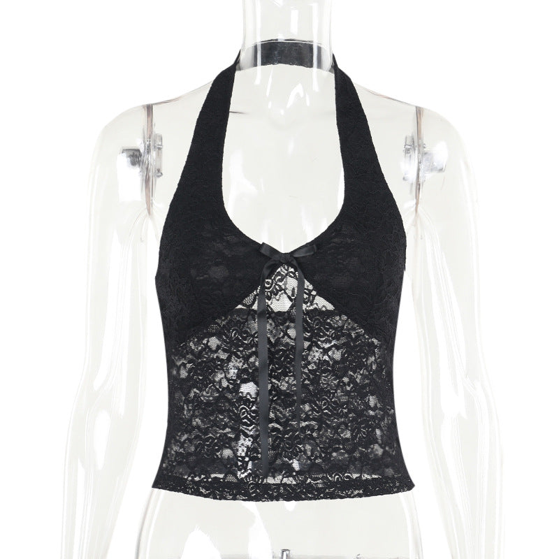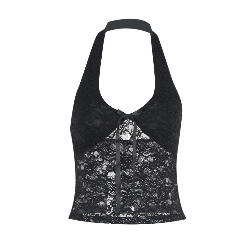 Plataz Autumn 2025 New Hanging Neck Top Sexy V-Neck Lace Babes Waistcoat Woman DJPT