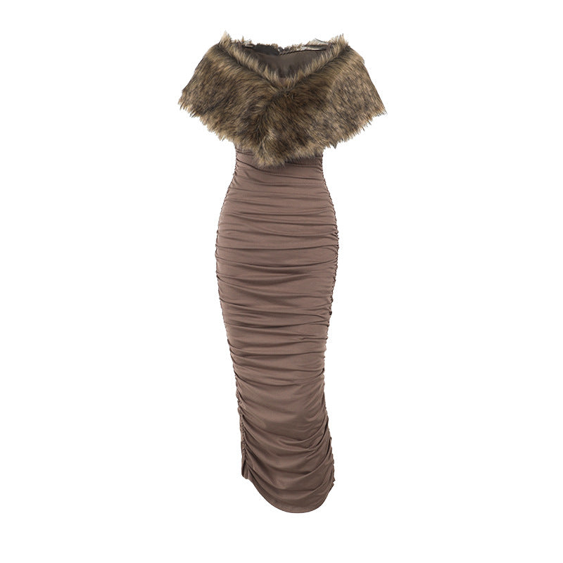 Plataz Autumn 2025 New Temperament Body-Body-Slender Shoulder-To-Heart Shawl Dress Woman DJPT