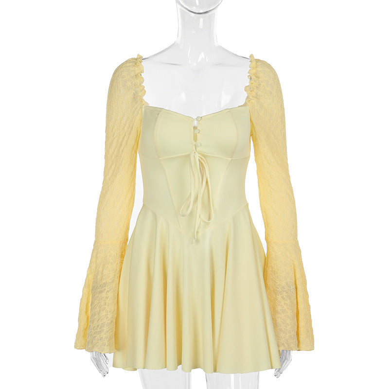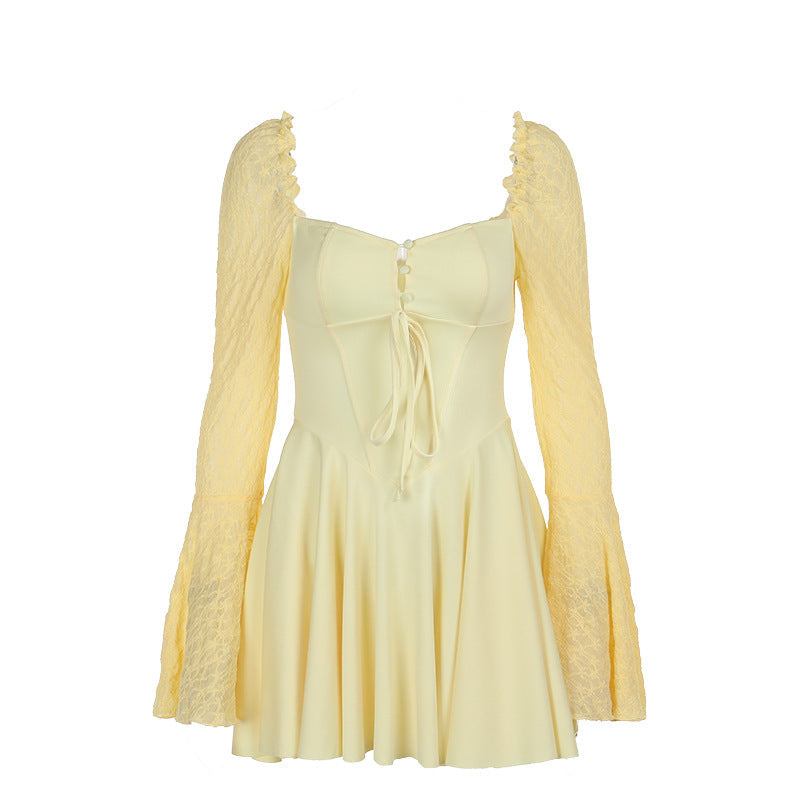 Plataz Autumn 2025 New Temperament Sexy Bag Ass Dress Famous Vintage Square Lace Long-Sleeved Dress DJPT