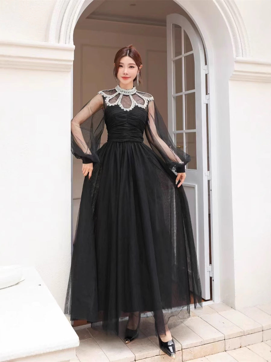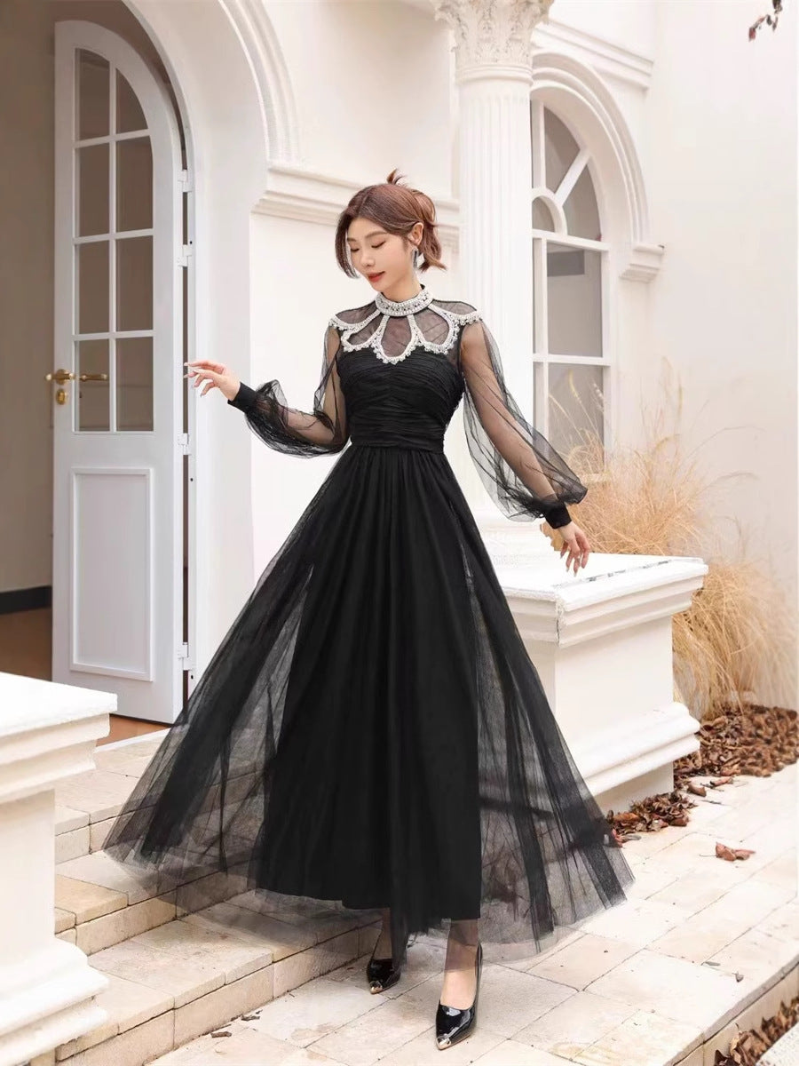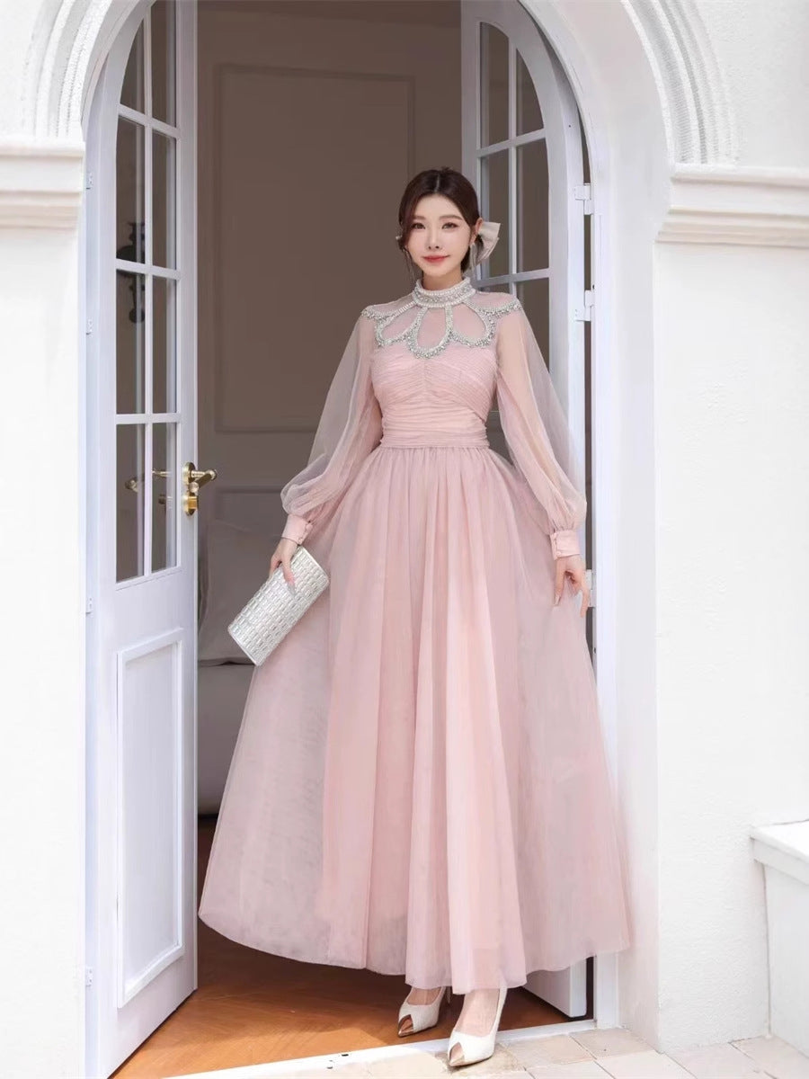 Plataz Autumn And Winter Heavy Industry Famous Diamond Decoration Net Fairy Atmosphere Dress Long Dress Host Banquet Dress