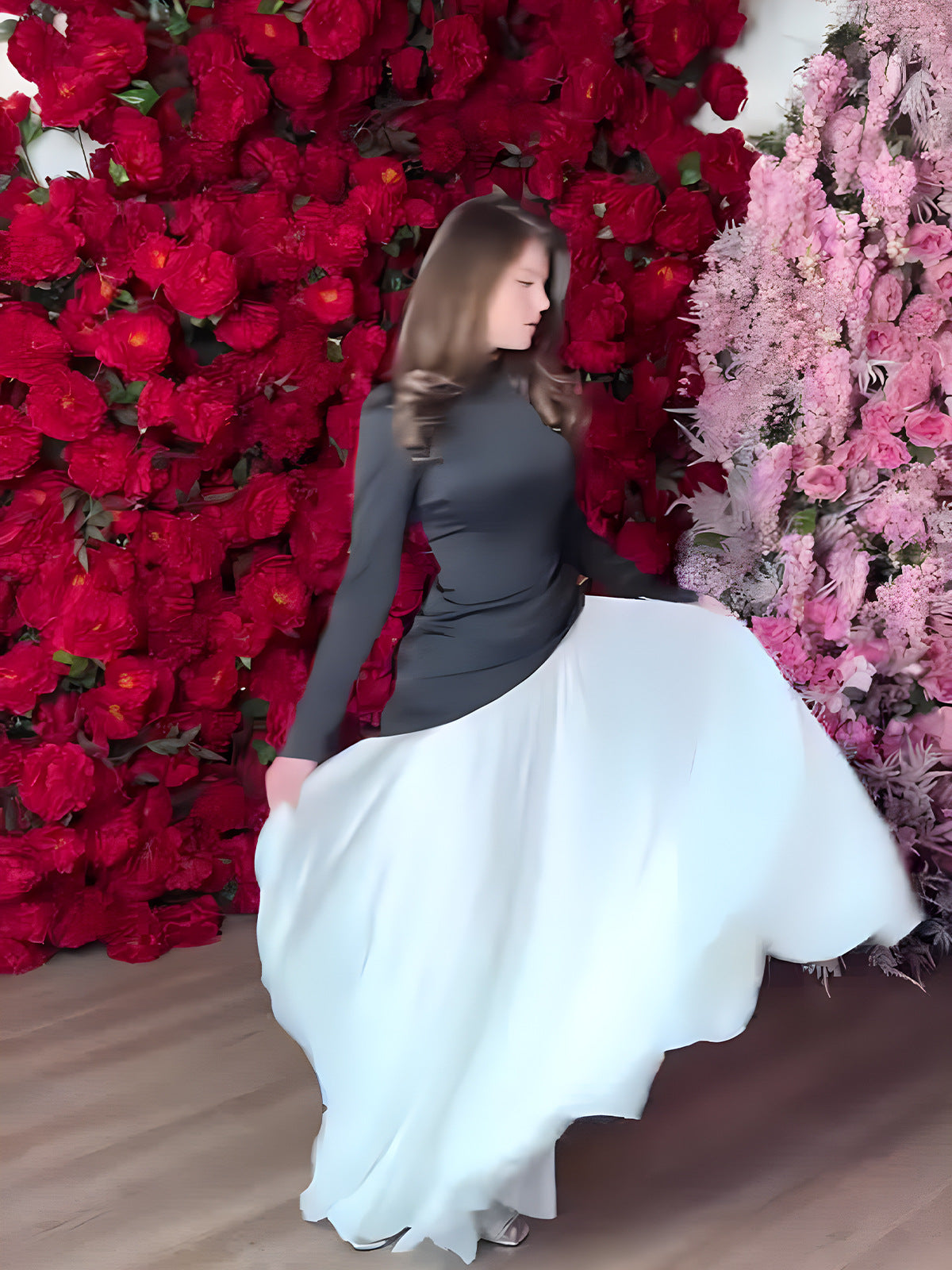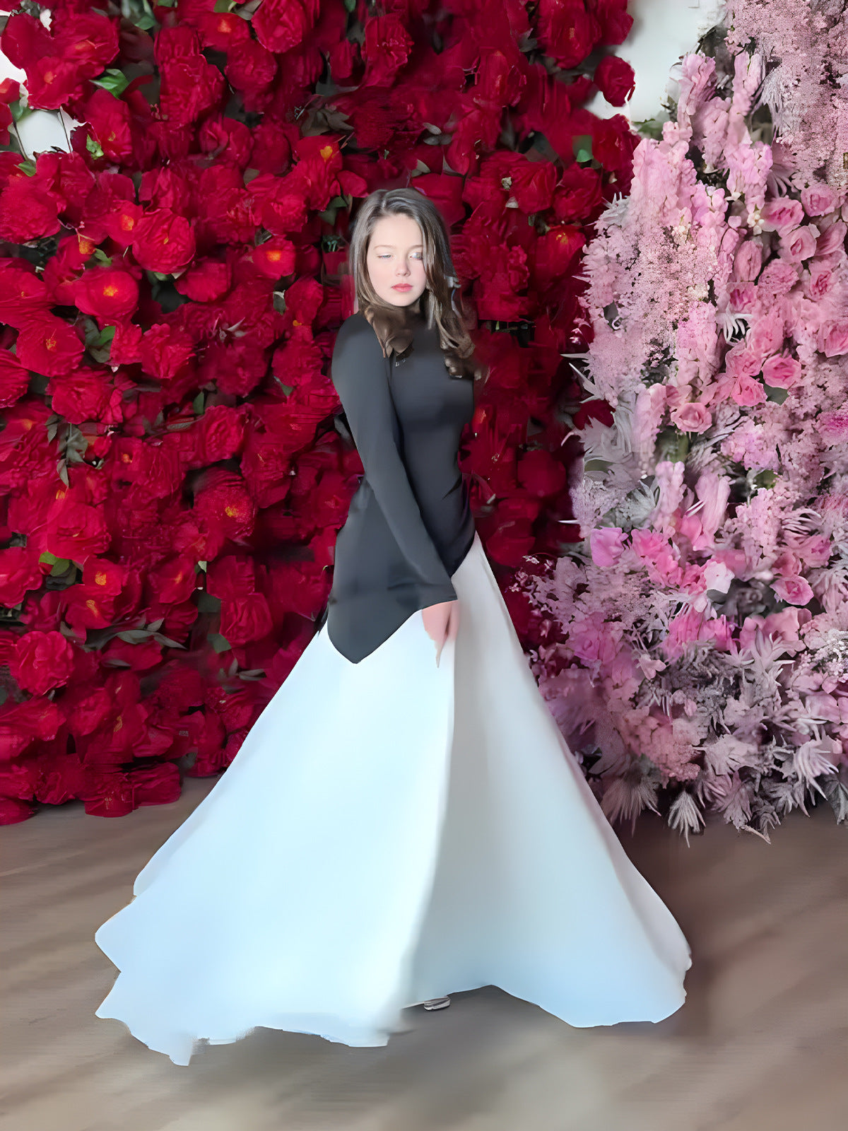 Plataz Autumn New Black And White Splicing Temperament Folds To The Waist Show Thin Swing Dress Women