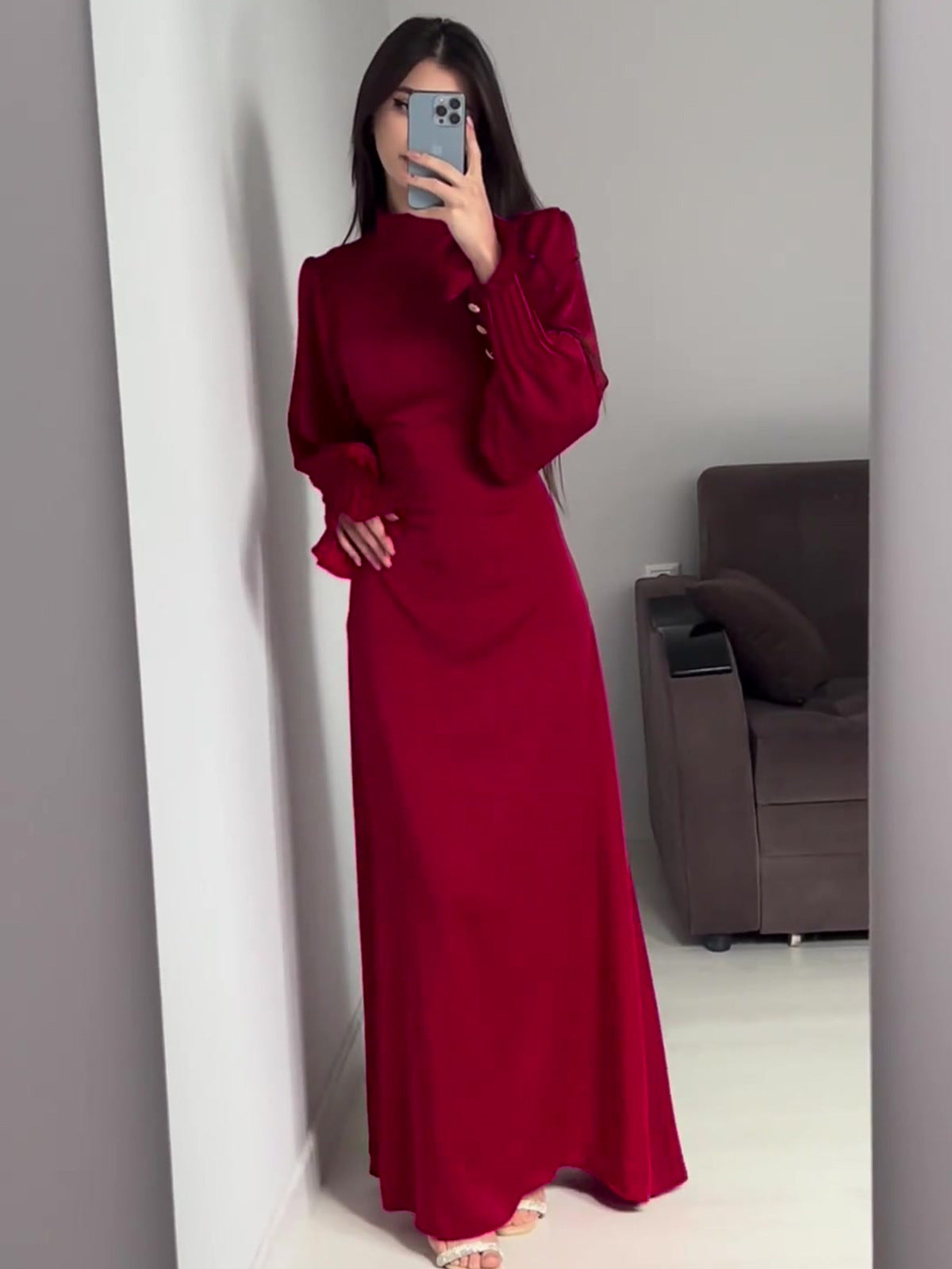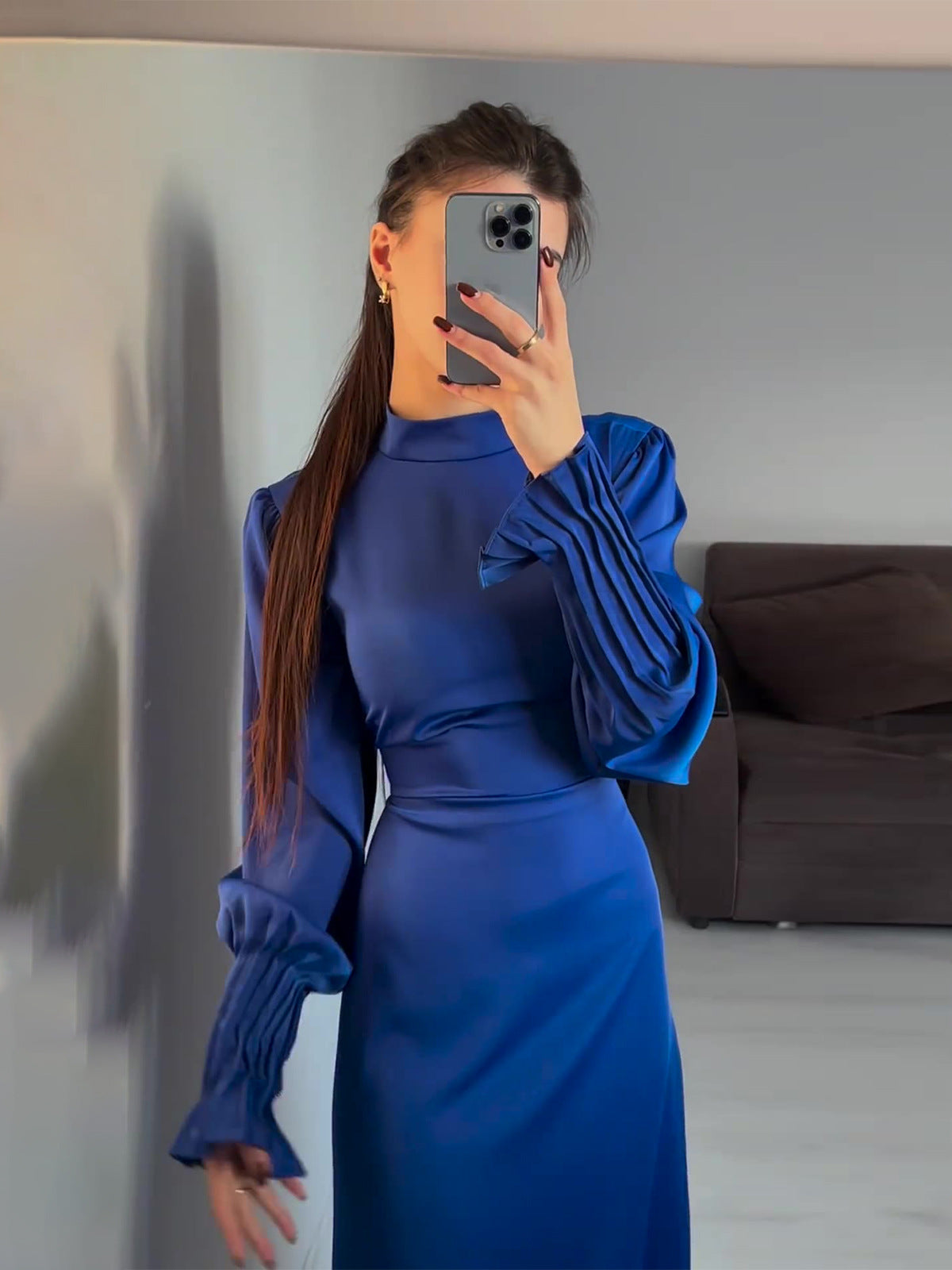 Plataz Autumn New Folding Belt Design Court Style Dress