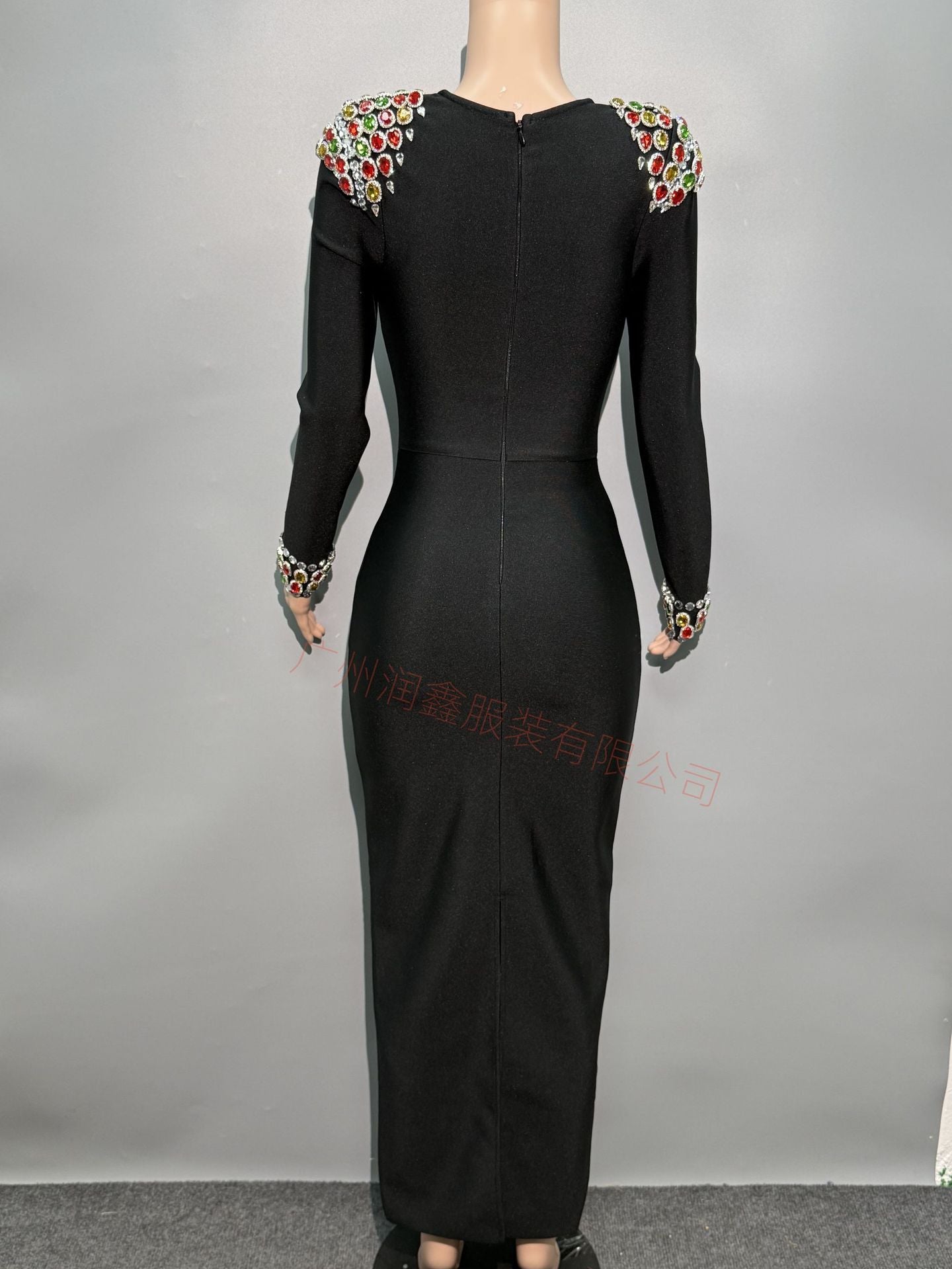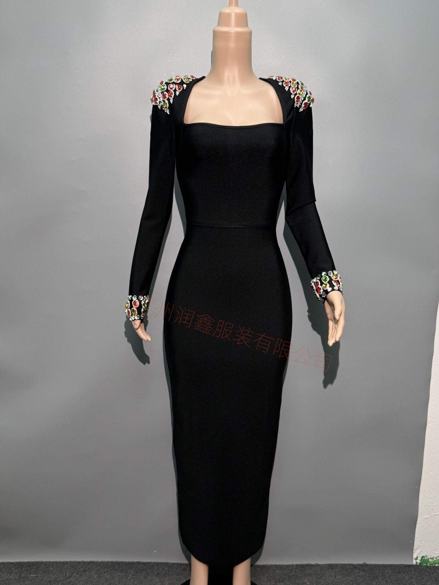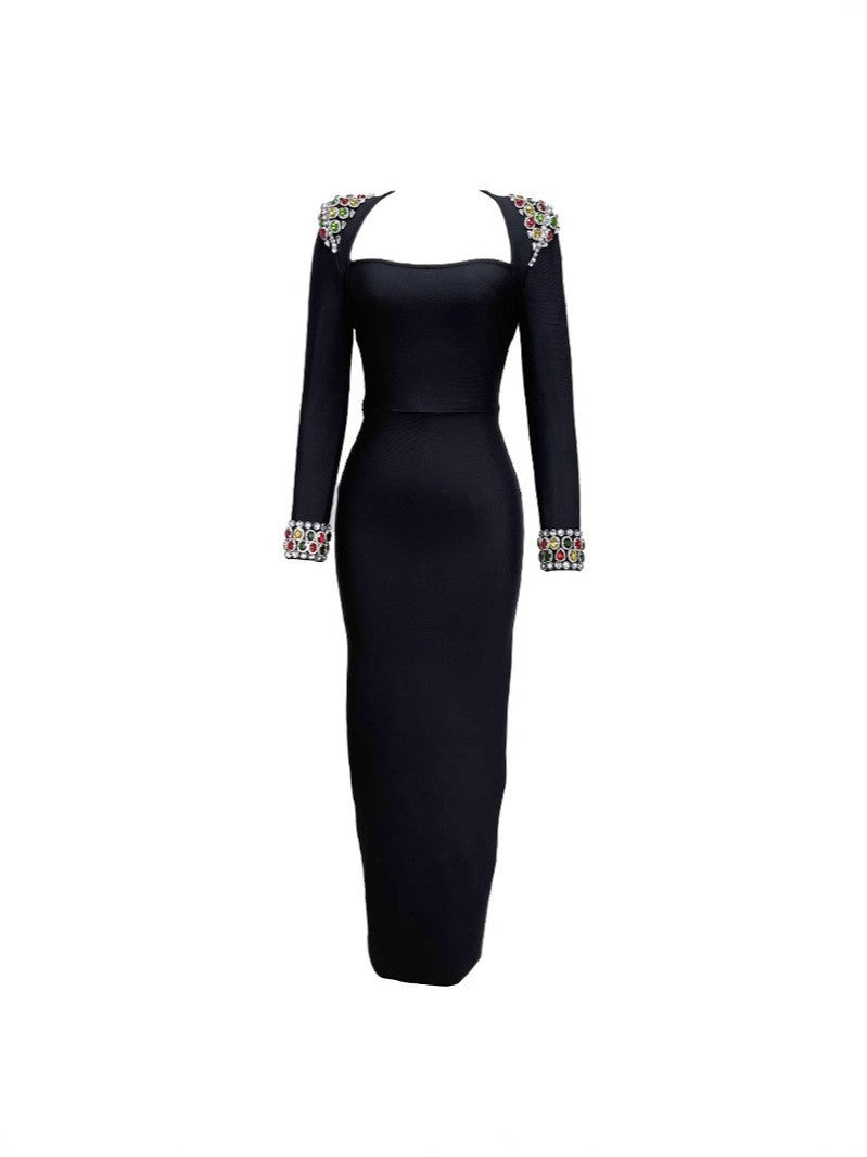 Plataz Autumn/Winter Dress French Women's Dress Handmade Color Diamond Long-Sleeved Collar Knitted Evening Dress