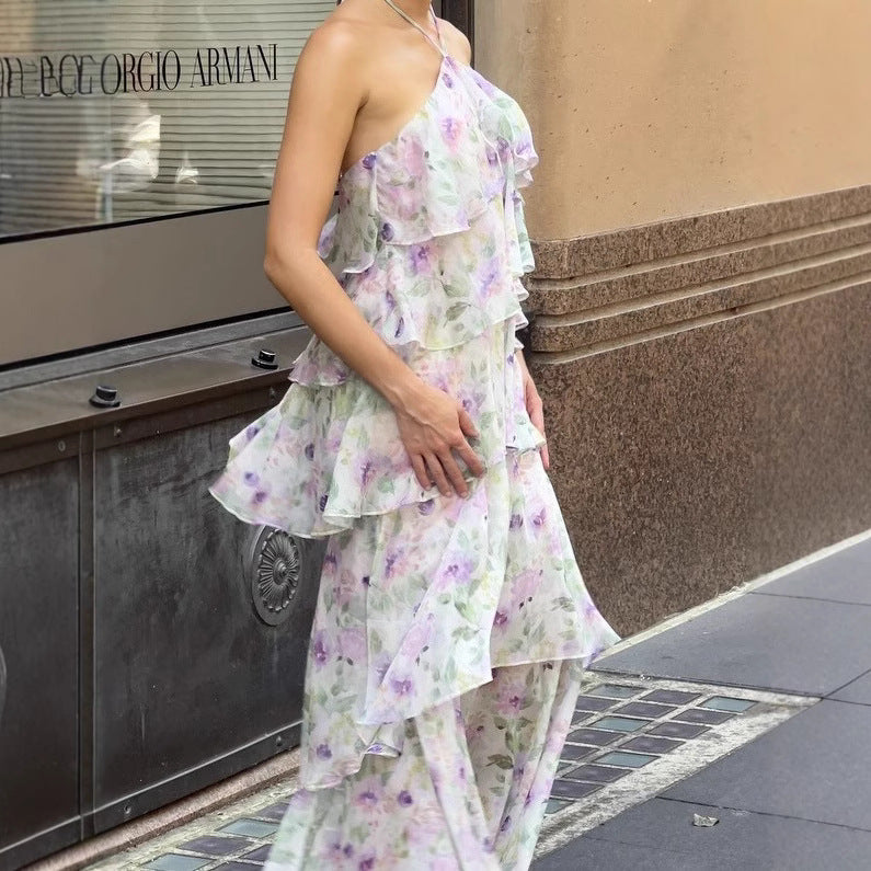 Plataz Beautiful Retro Floral Hanging Neck Sling Dress Summer Design Feel Seaside Vacation Beautiful Temperament Dress Woman HZ0628