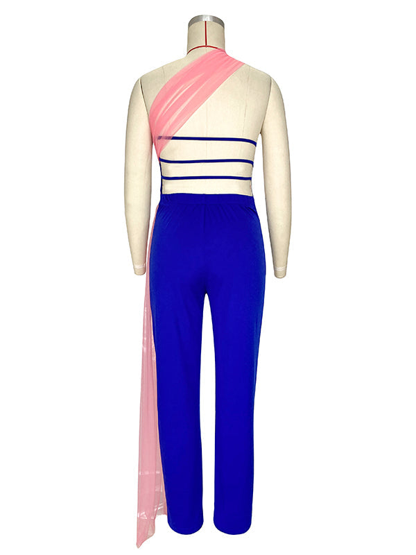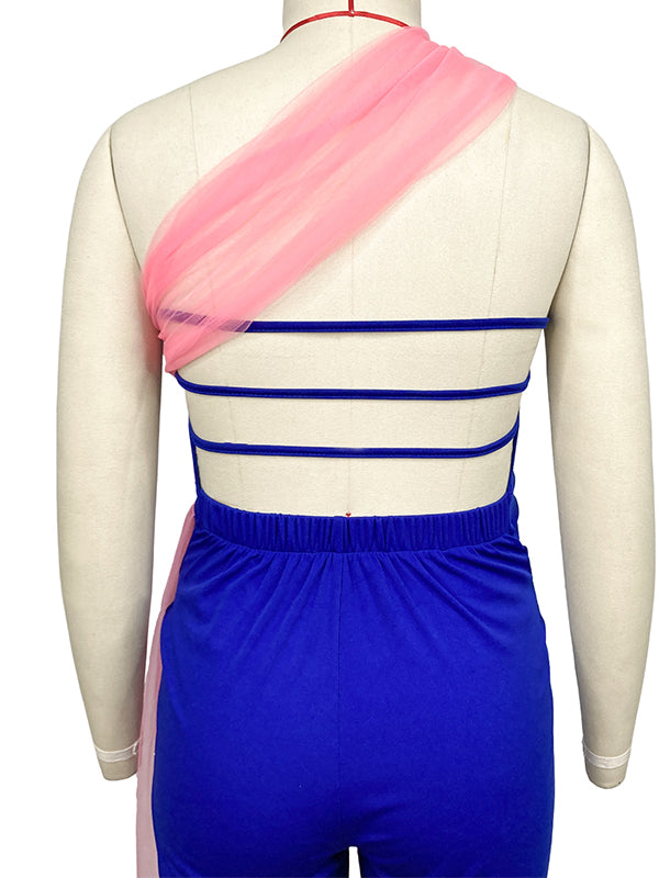 Plataz Blue&Pink Tulle Irregular Bandeau Grenadine Off Shoulder Backless Sleeveless Gender Reveal Baby Shower Maternity Jumpsuit Maternity
