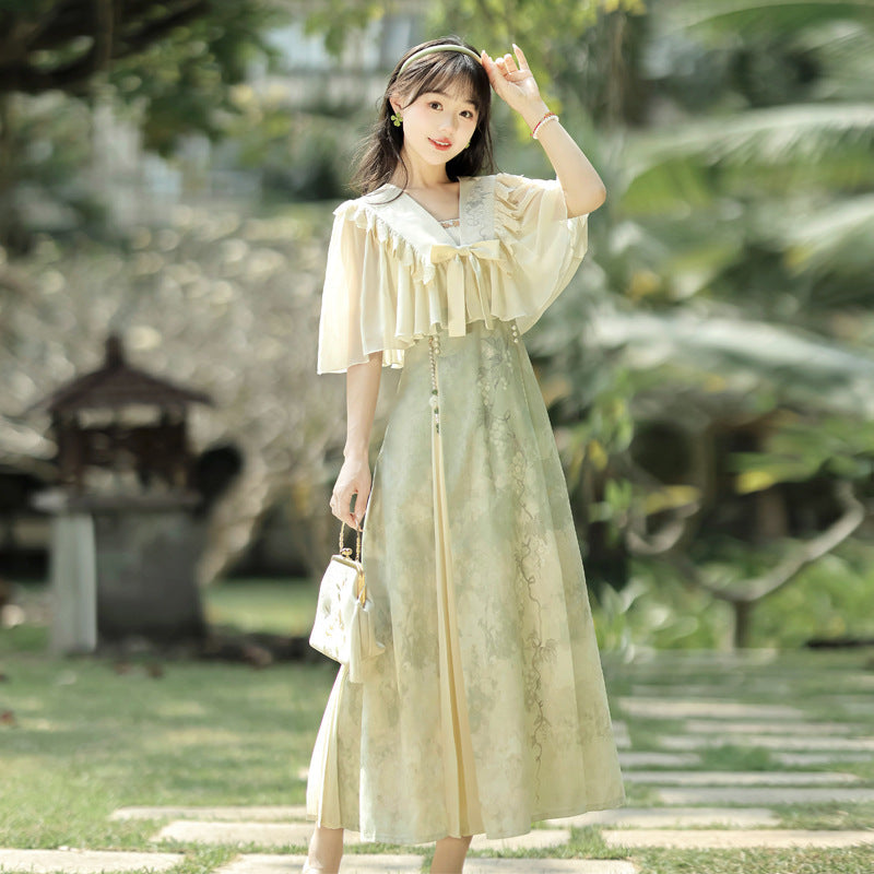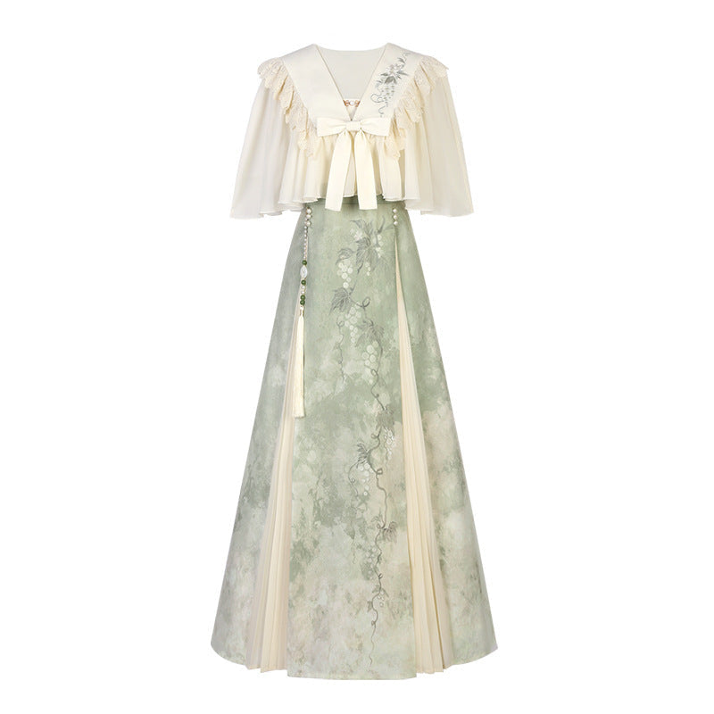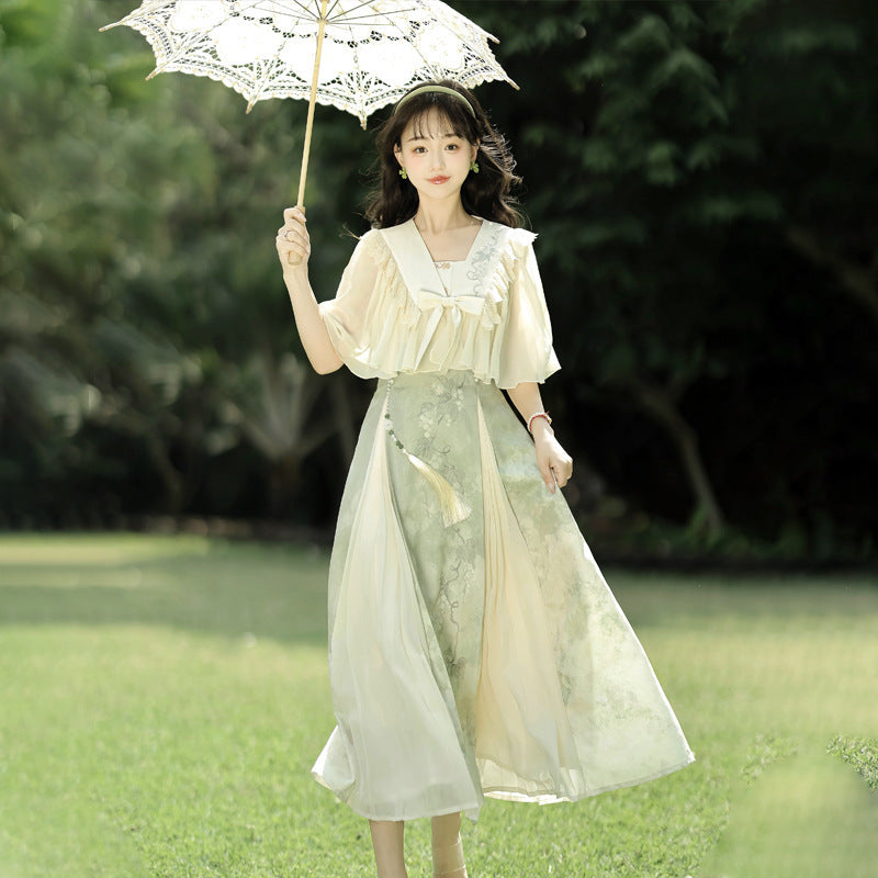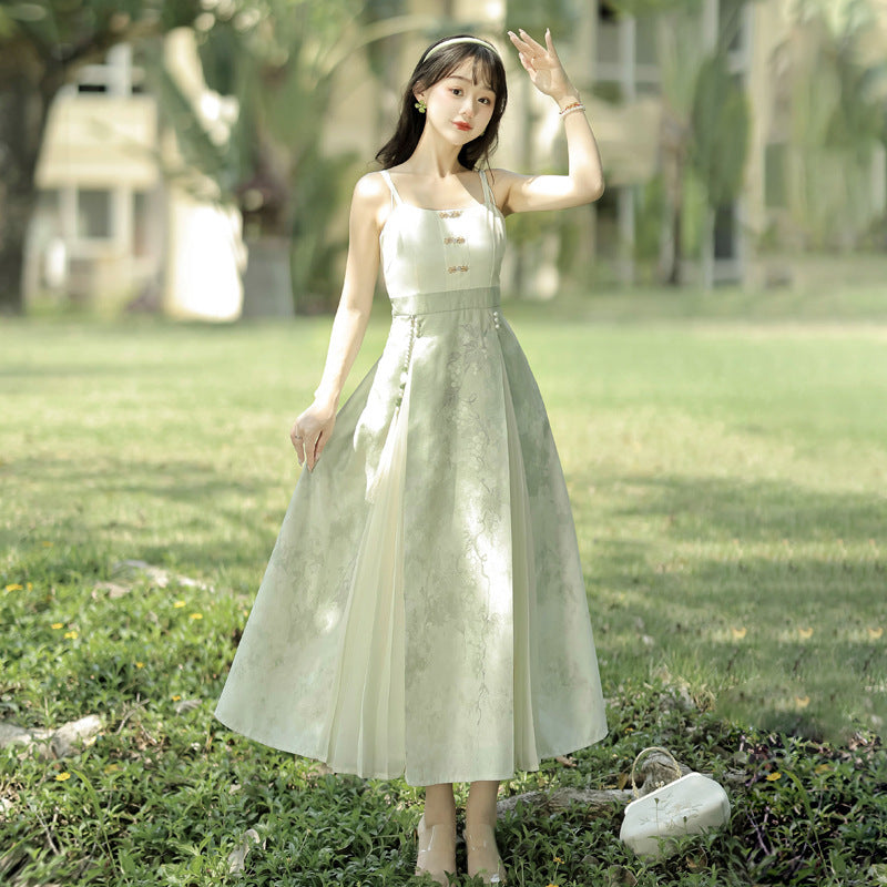 Plataz Blue Poetry Chinese Style Improvement Han Elements Women's Outer Sling Skirt Suit 9069
