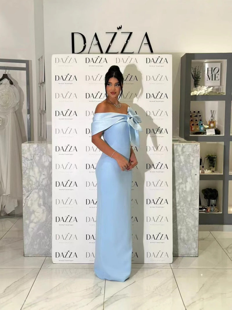 Plataz Blue Word Shoulder Banding Dress Dubai Elegant Famous French Evening Dress