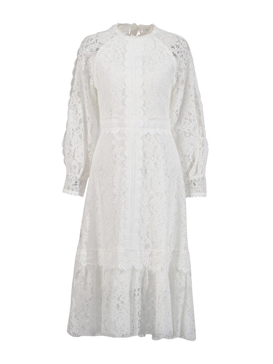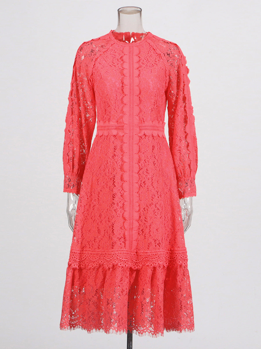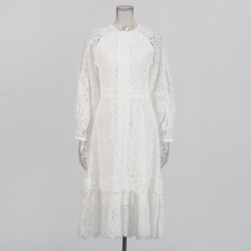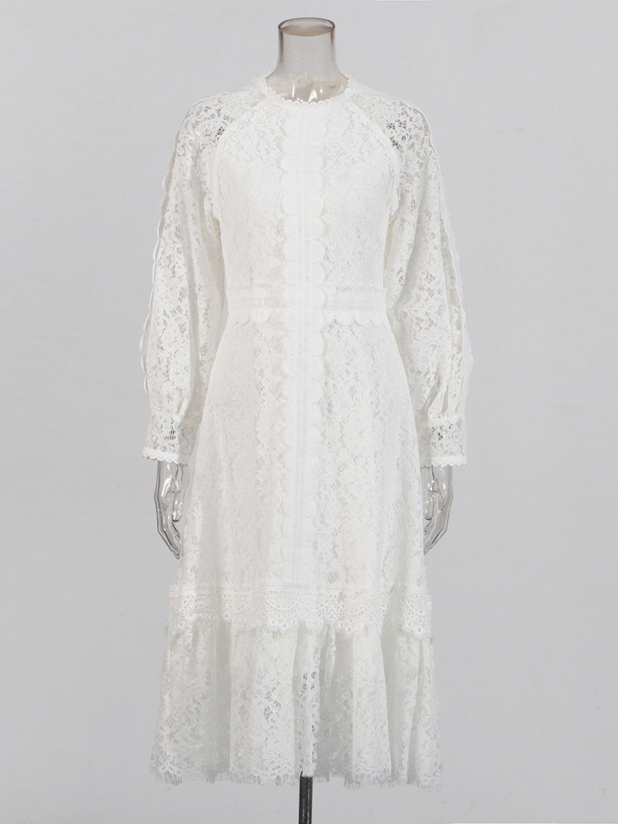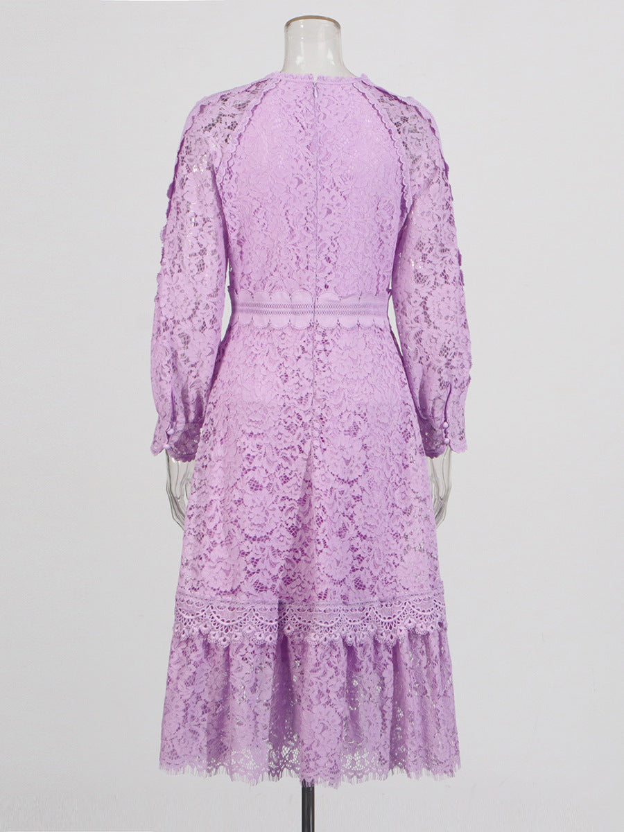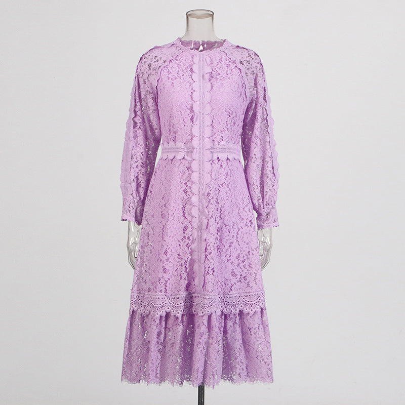 Plataz Bohemian 2025 Summer New Round-Neck Long Sleeve Zipper Design Solid Color Long Lace Dress