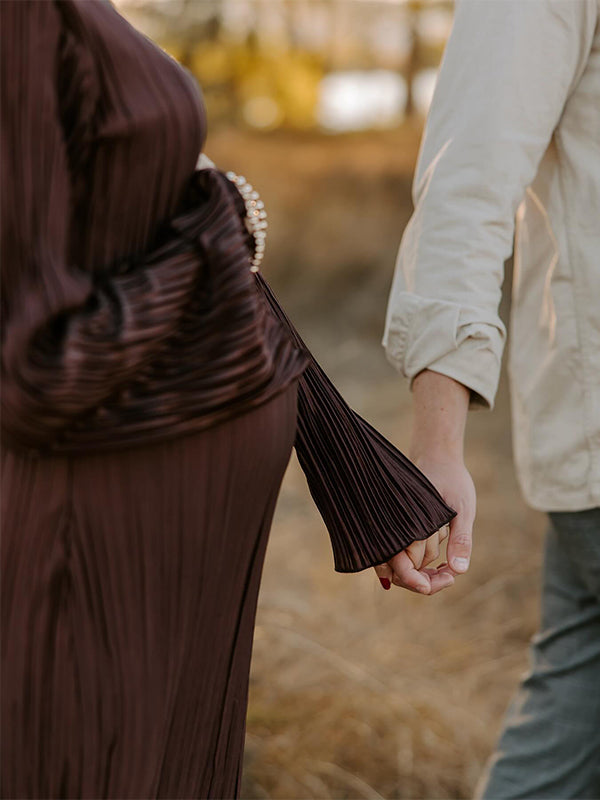 Plataz Brown Pleated Ruffle Belted Elegant Photoshoot Baby Shower Maternity Maxi Dress Maternity