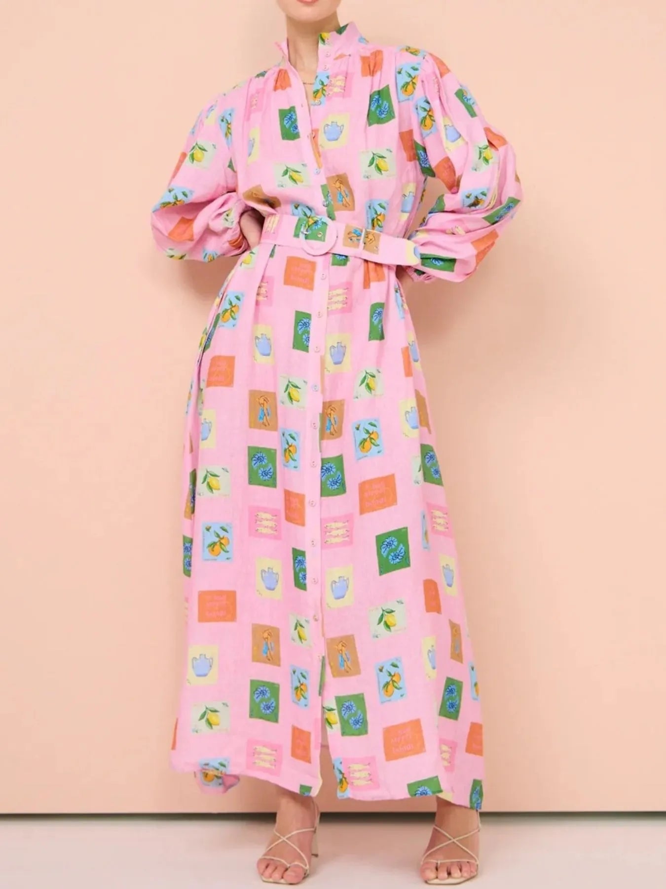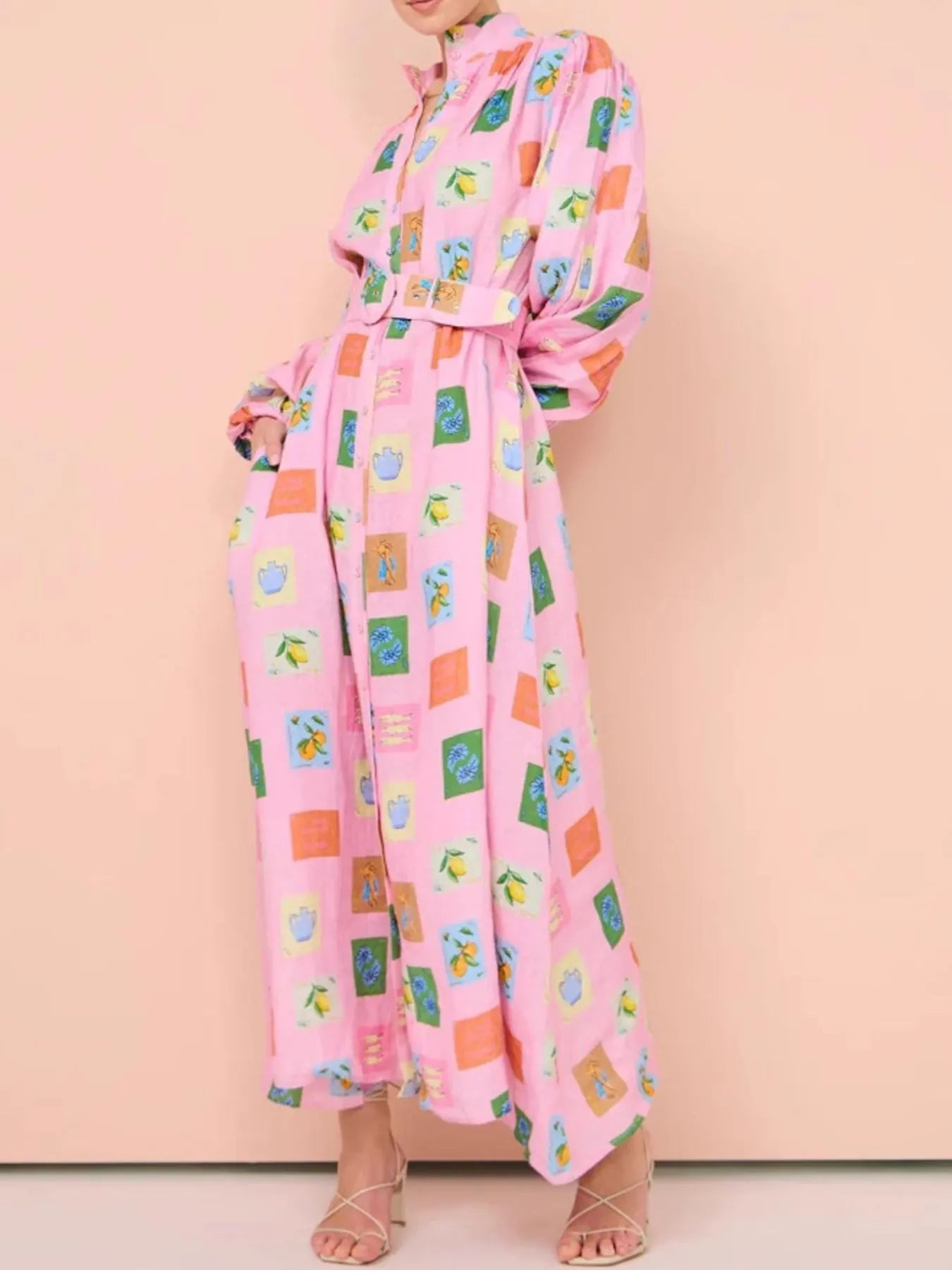 Plataz Button Front Long Sleeve Shirt Dress DJPT