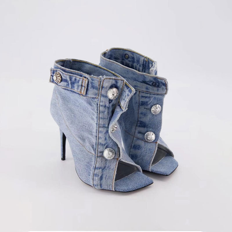 Plataz Catwalk Fine And Super High And High Help Big Fish Mouth Cowboy Button Slippers Square Boots Girl High Quality Shoes